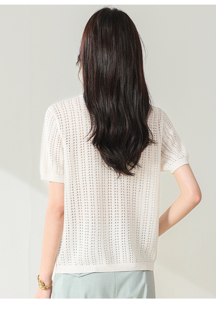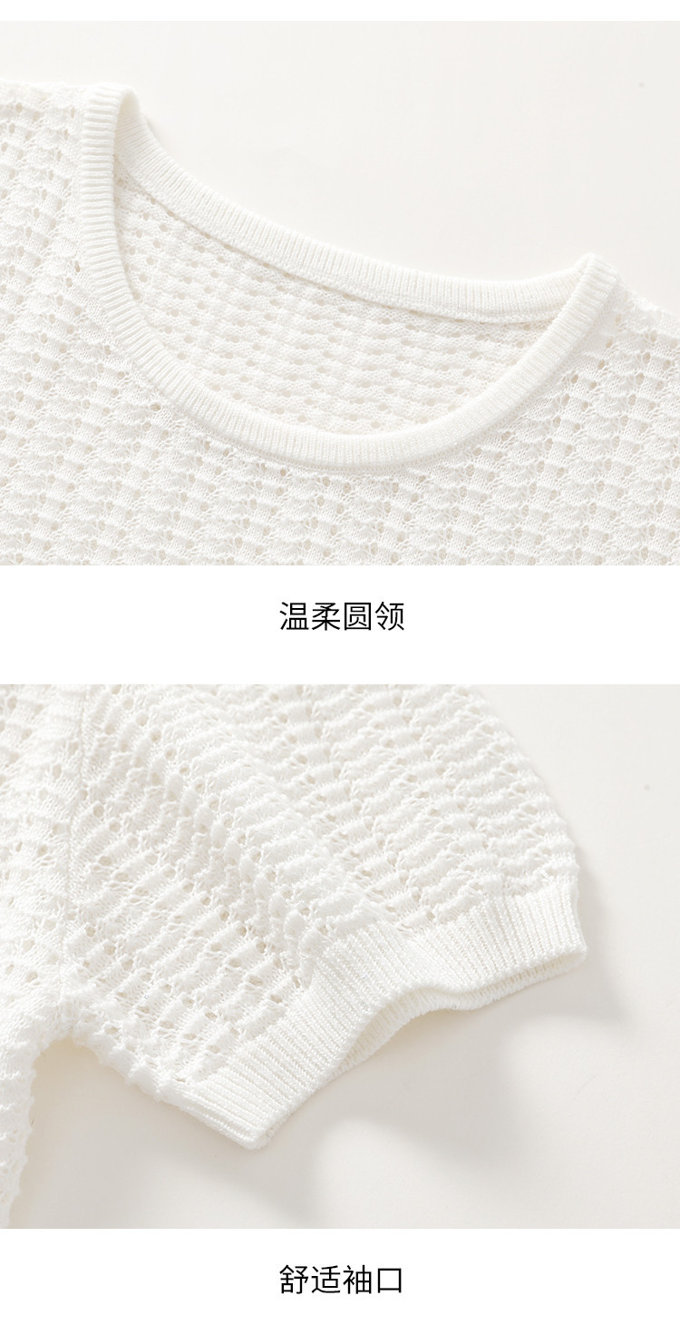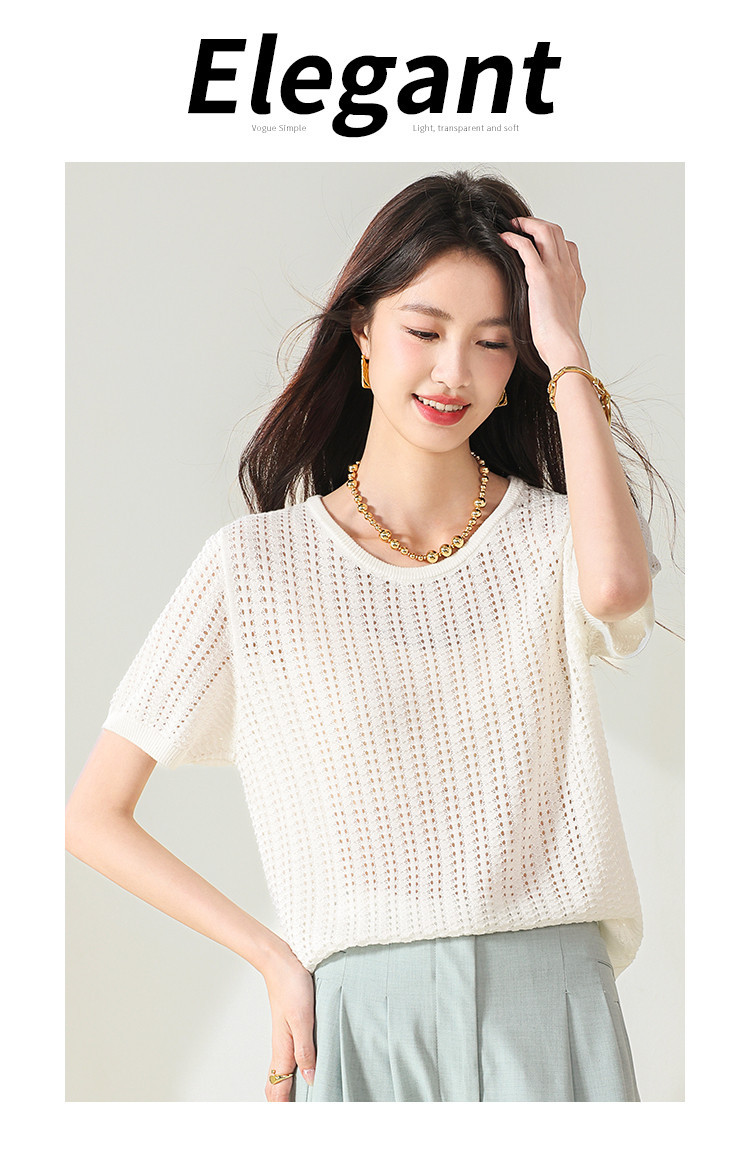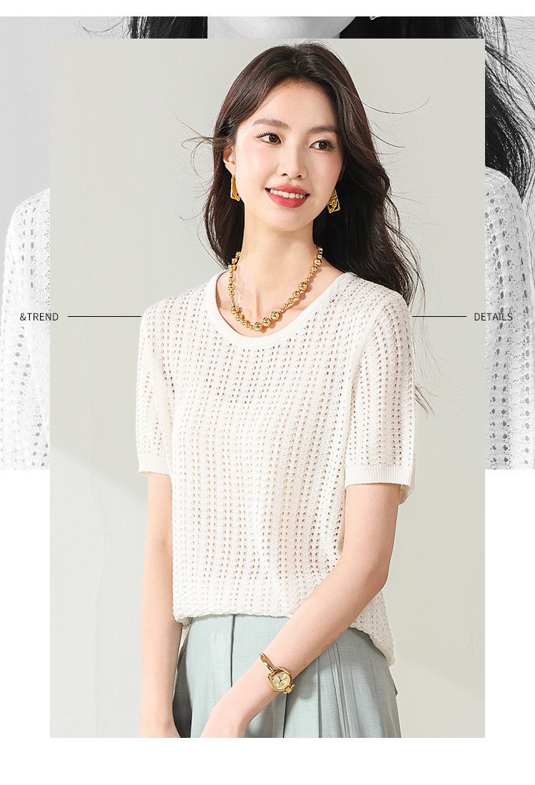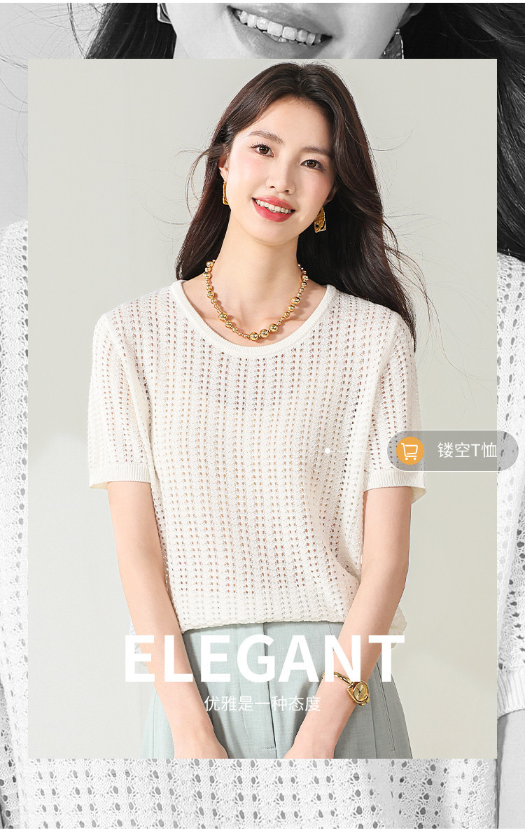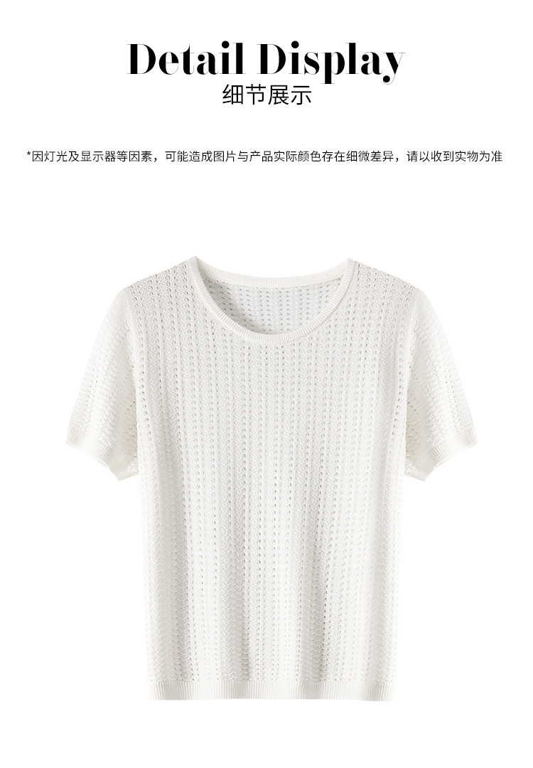 商品名称:【含桑蚕丝】轻薄透气圆领镂空针织打底短袖T恤 304403