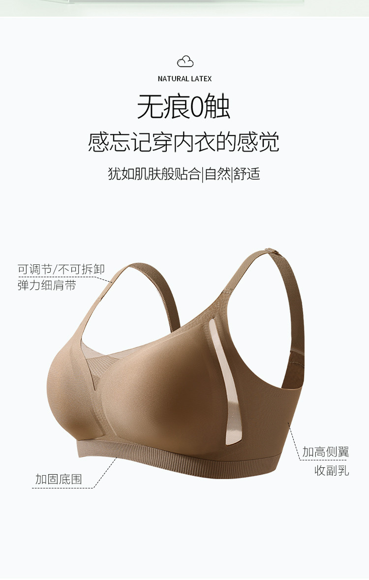 商品名称:【含天然乳胶杯】抑菌透气侧收副乳高弹提拉无钢圈女士内衣文胸罩 327262