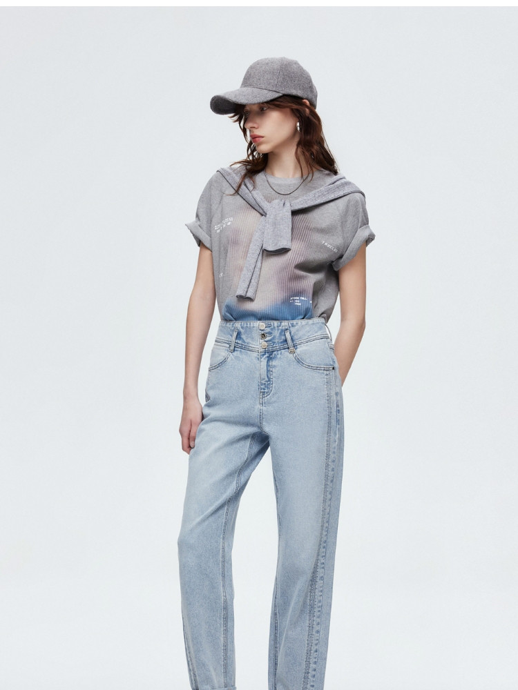 【高腰锥形裤】2025夏季男友风显瘦九分裤牛仔裤女 072282