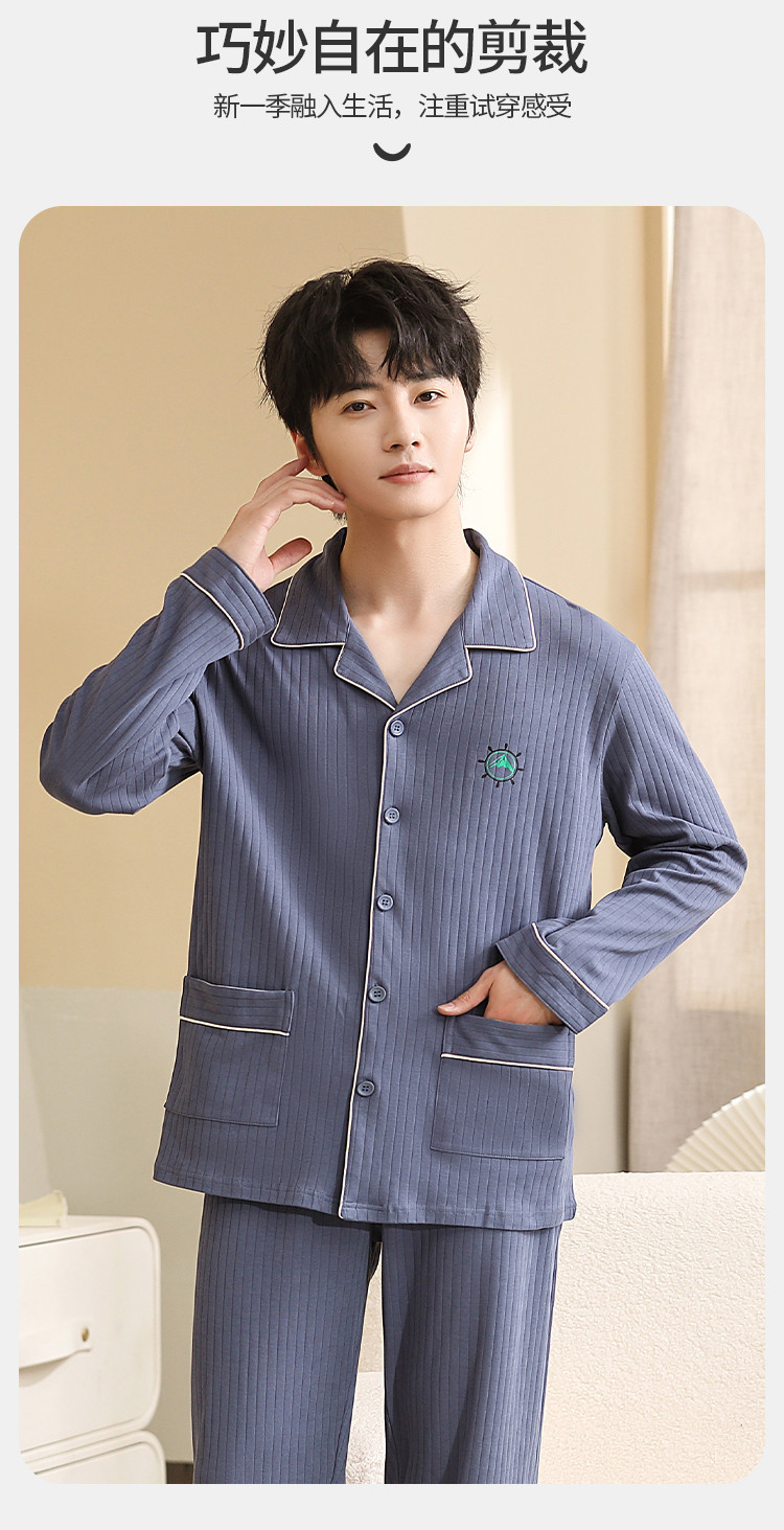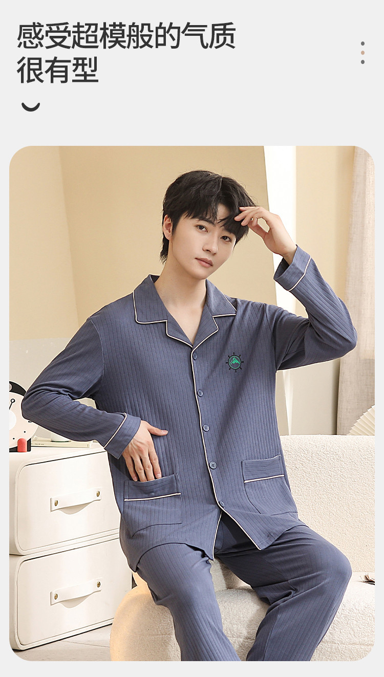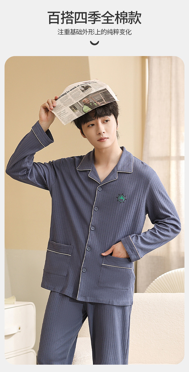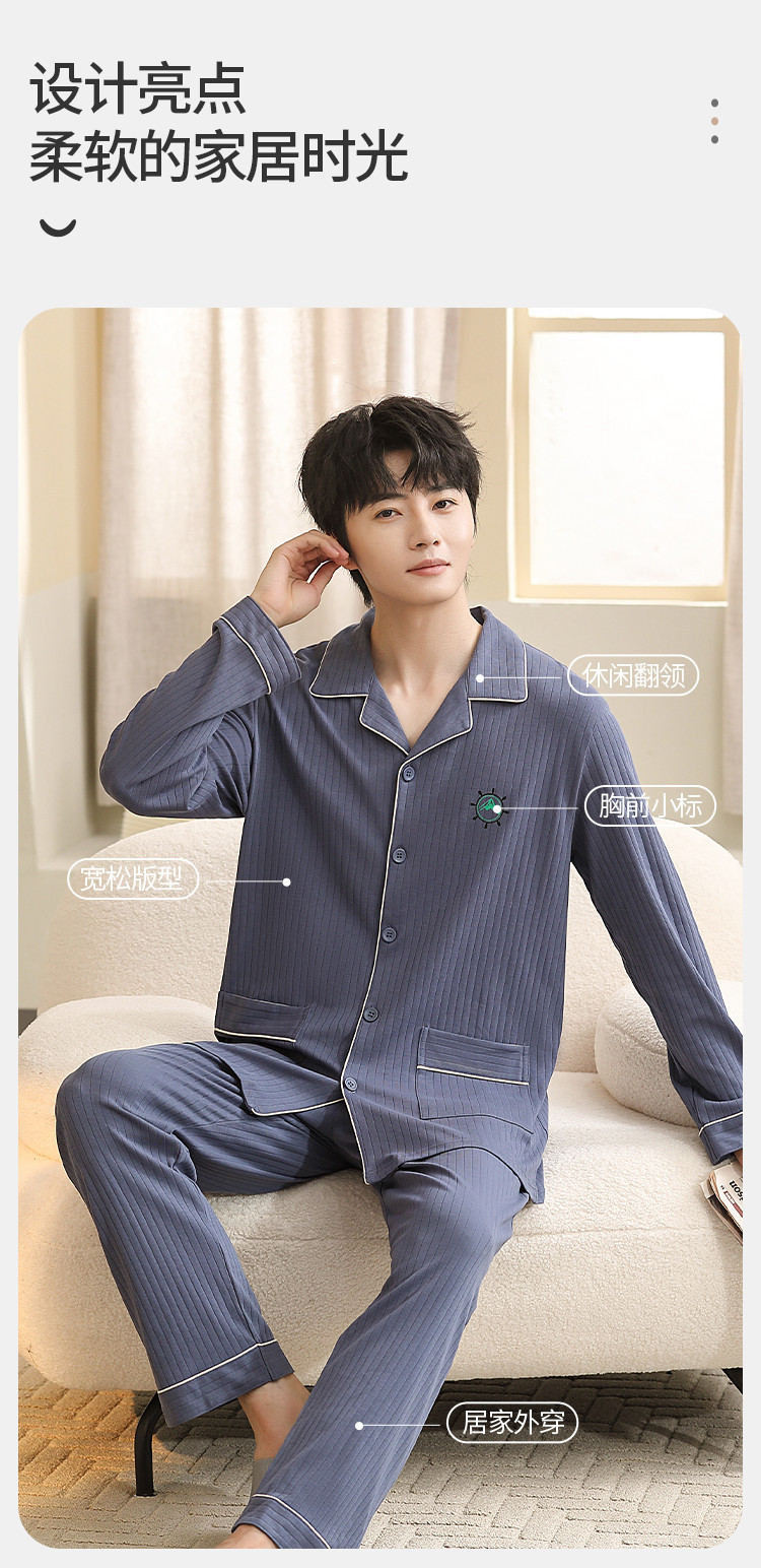 商品名称:【100%棉】男士纯棉睡衣春款长袖长裤两件套家居服全棉睡衣男 803019