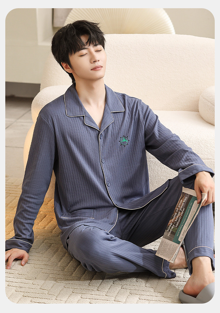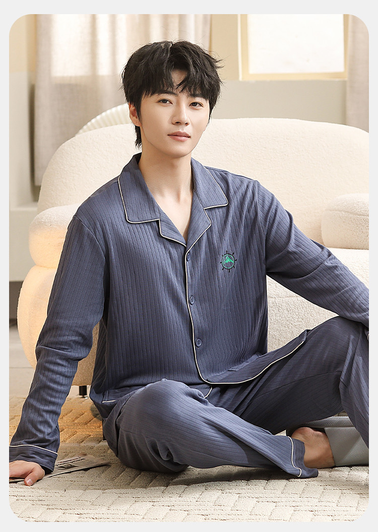 【100%棉】男士纯棉睡衣春款长袖长裤两件套家居服全棉睡衣男 803019