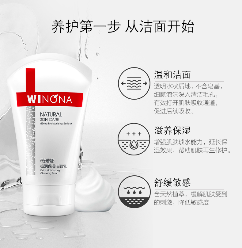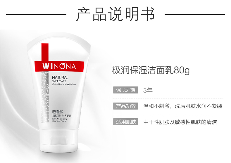 商品名称:Winqan/薇诺娜 极润保湿洁面乳 80g 补水温和洗面奶深层清洁修护