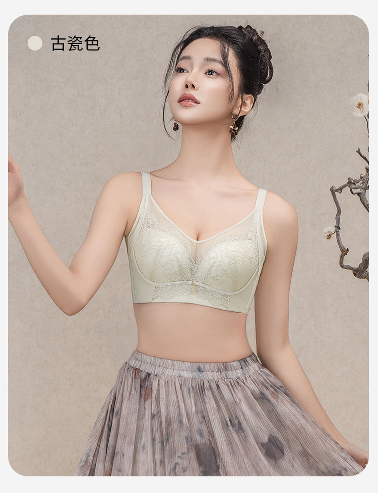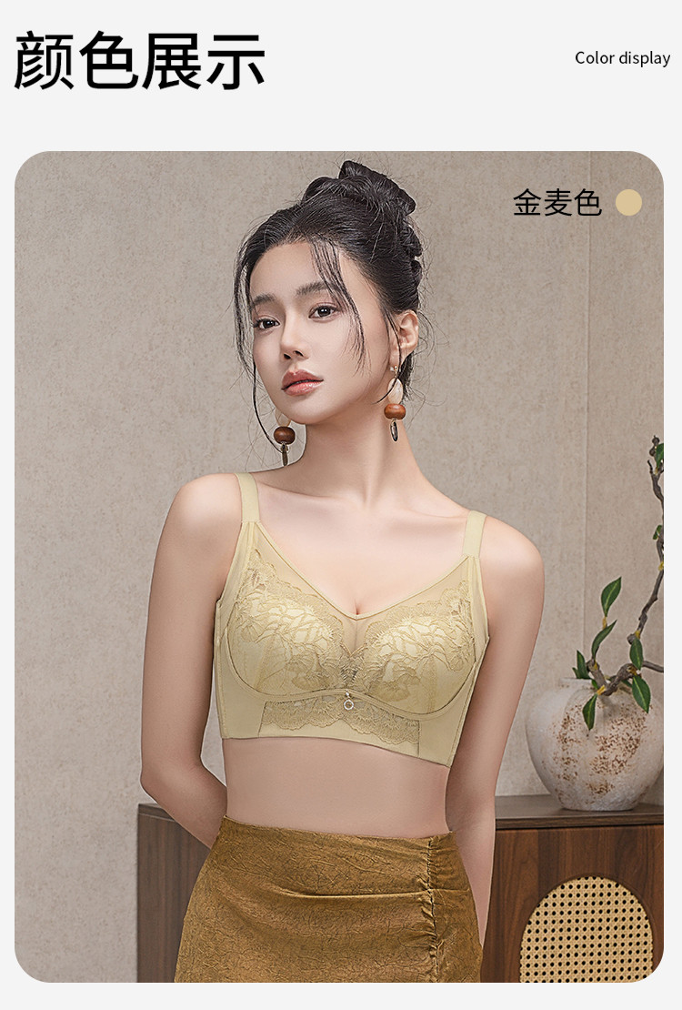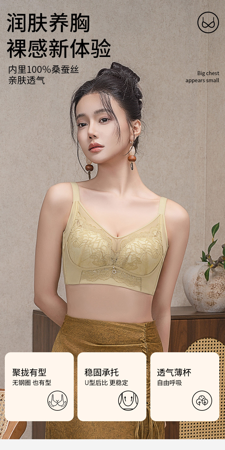 商品名称:【大胸显小】桑蚕丝文胸透气无钢圈舒适收副乳防下垂调整内衣女士 141323