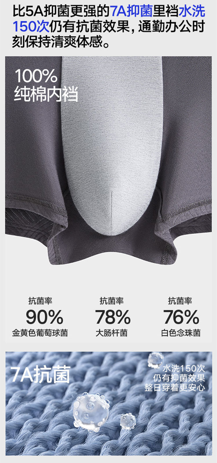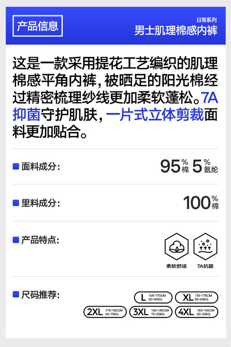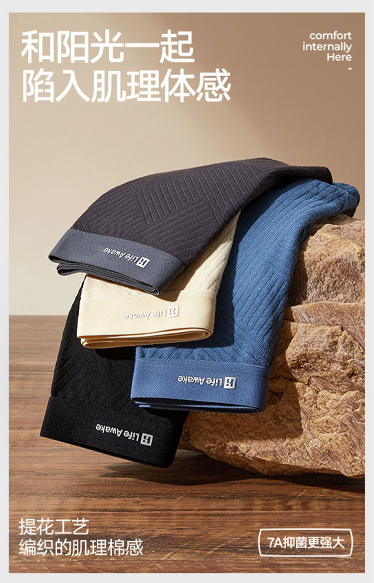 商品名称:【100%纯棉档 7A抗菌】3条装男士平角内裤高端四角短裤男 791258
