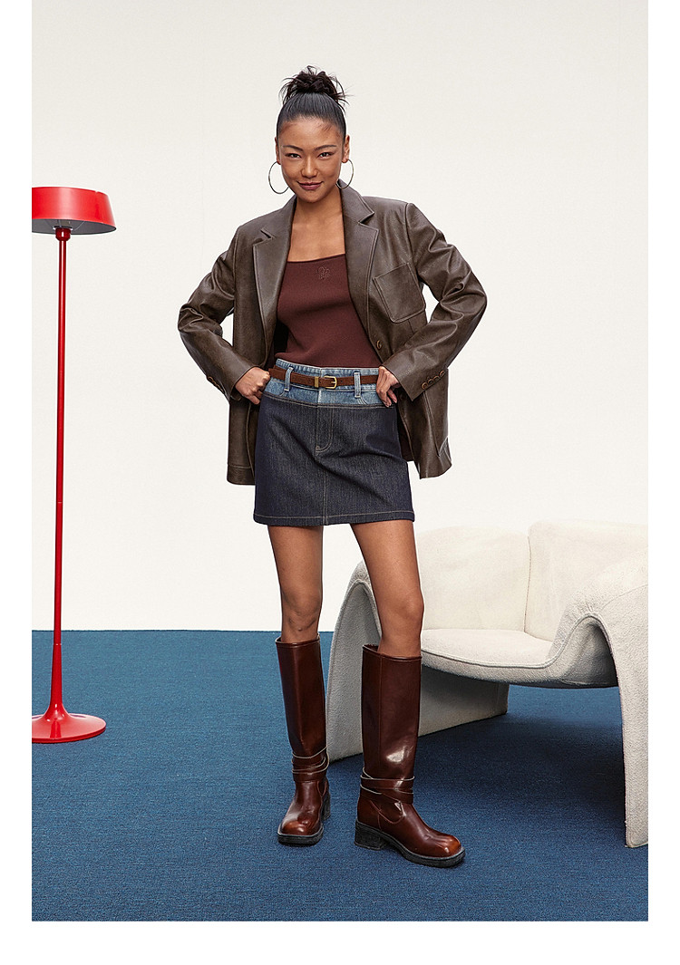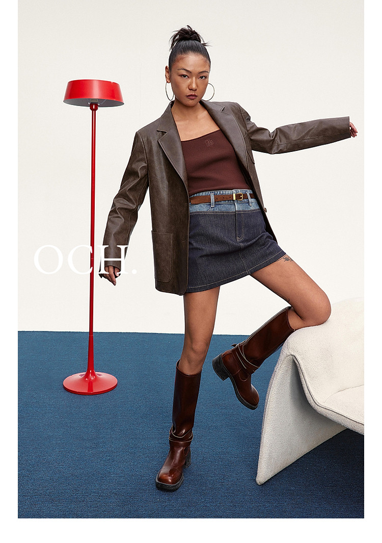 限定系列OCH.春装 油蜡PU皮衣夹克宽松气质西装外套女 414095
