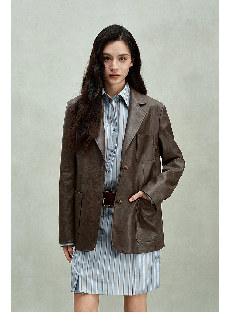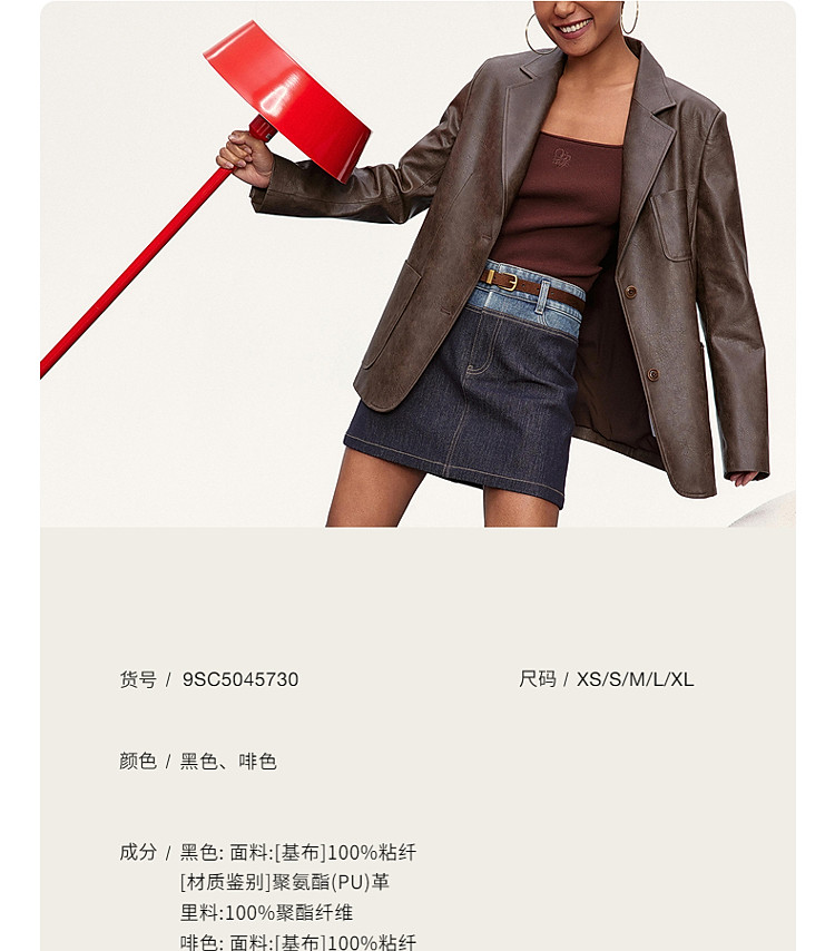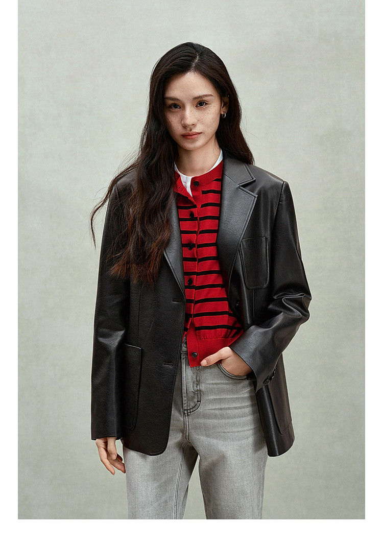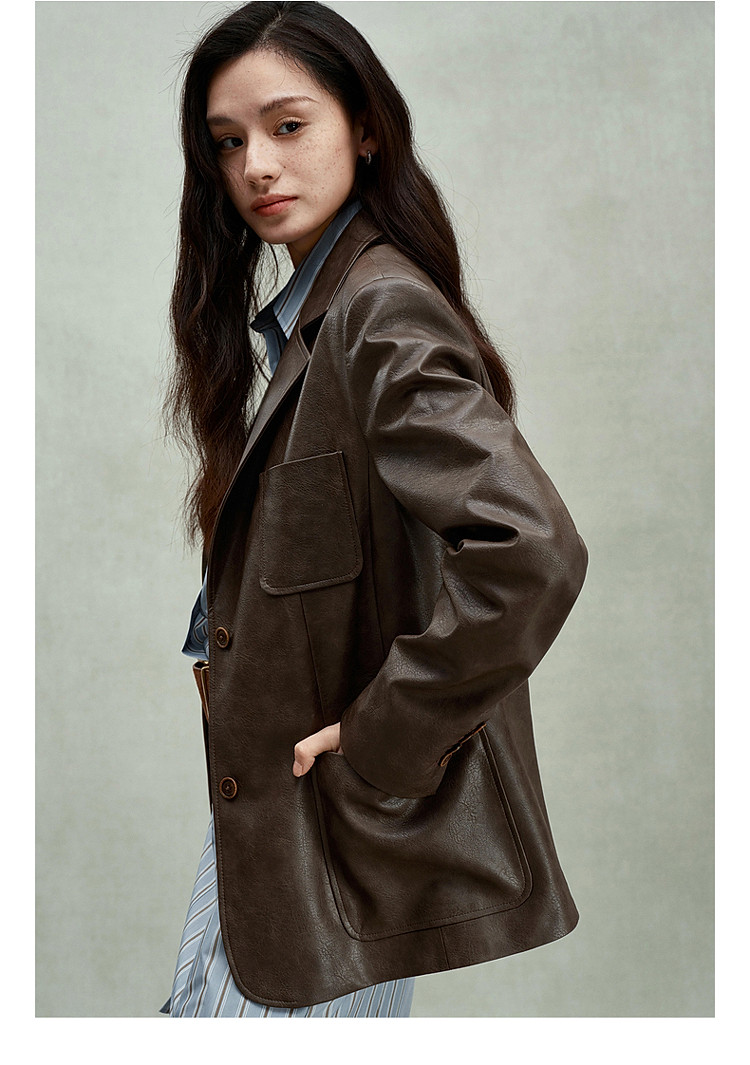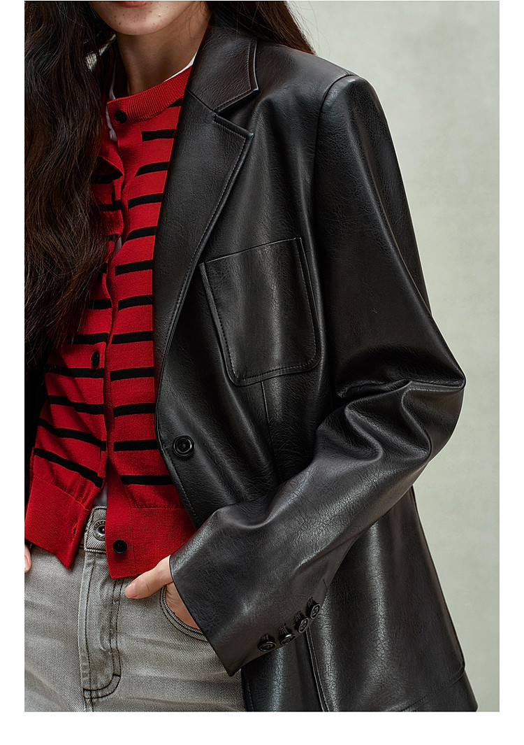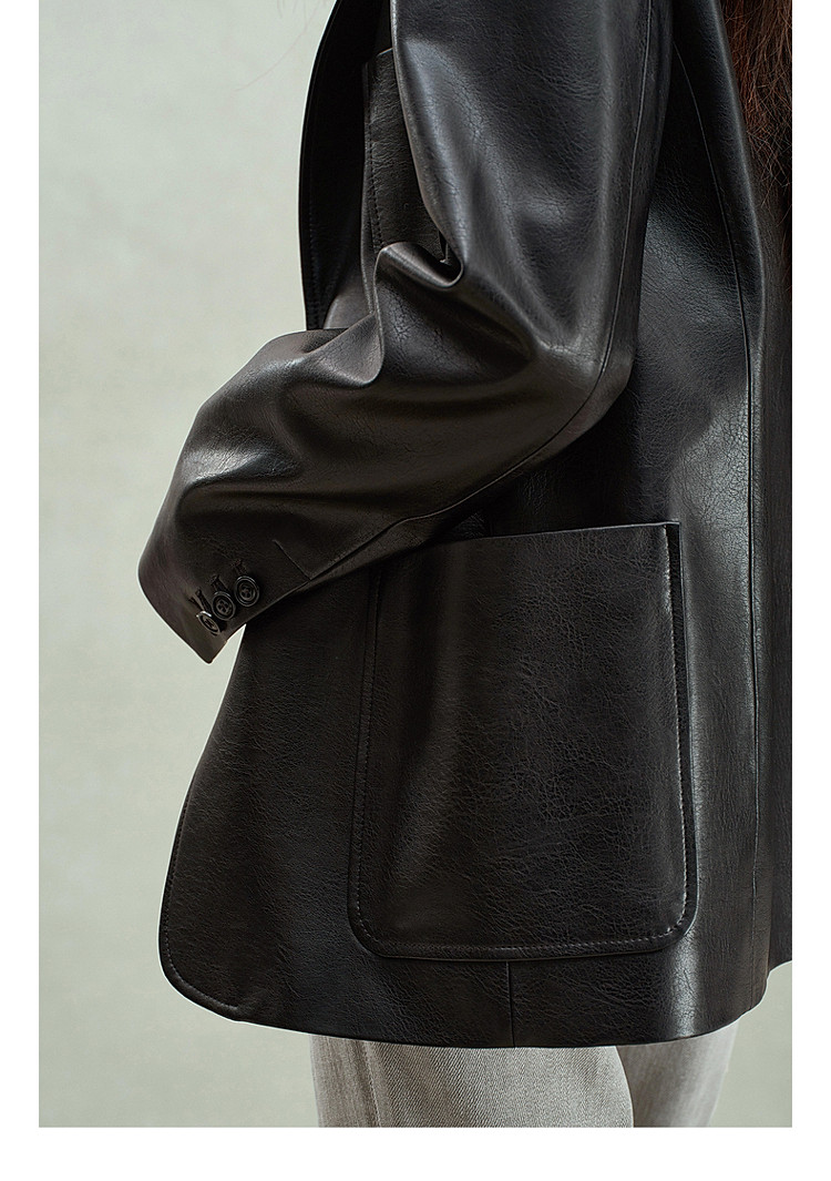 商品名称:限定系列OCH.春装 油蜡PU皮衣夹克宽松气质西装外套女 414095