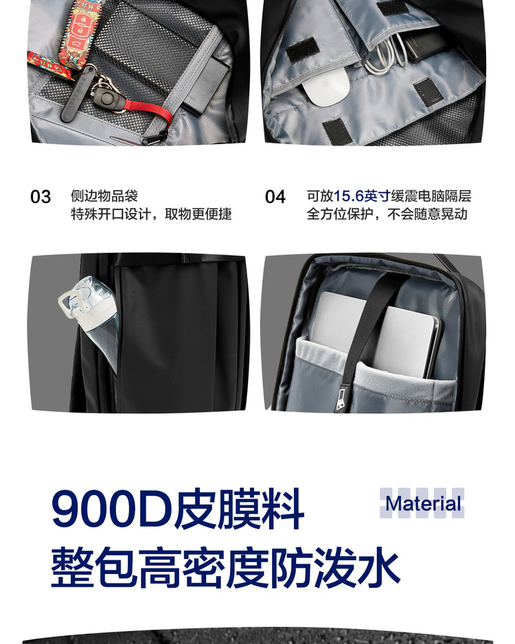 商品名称:【休闲运动】防泼水男士多功能休闲扩容大容量书包背包双肩包 095197