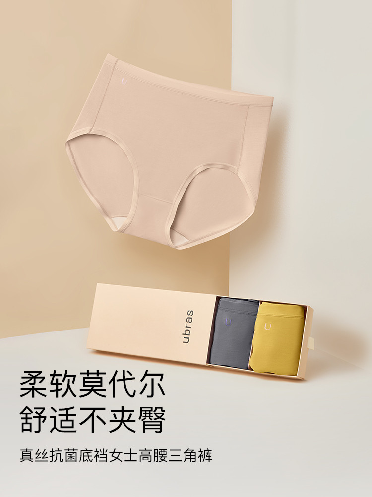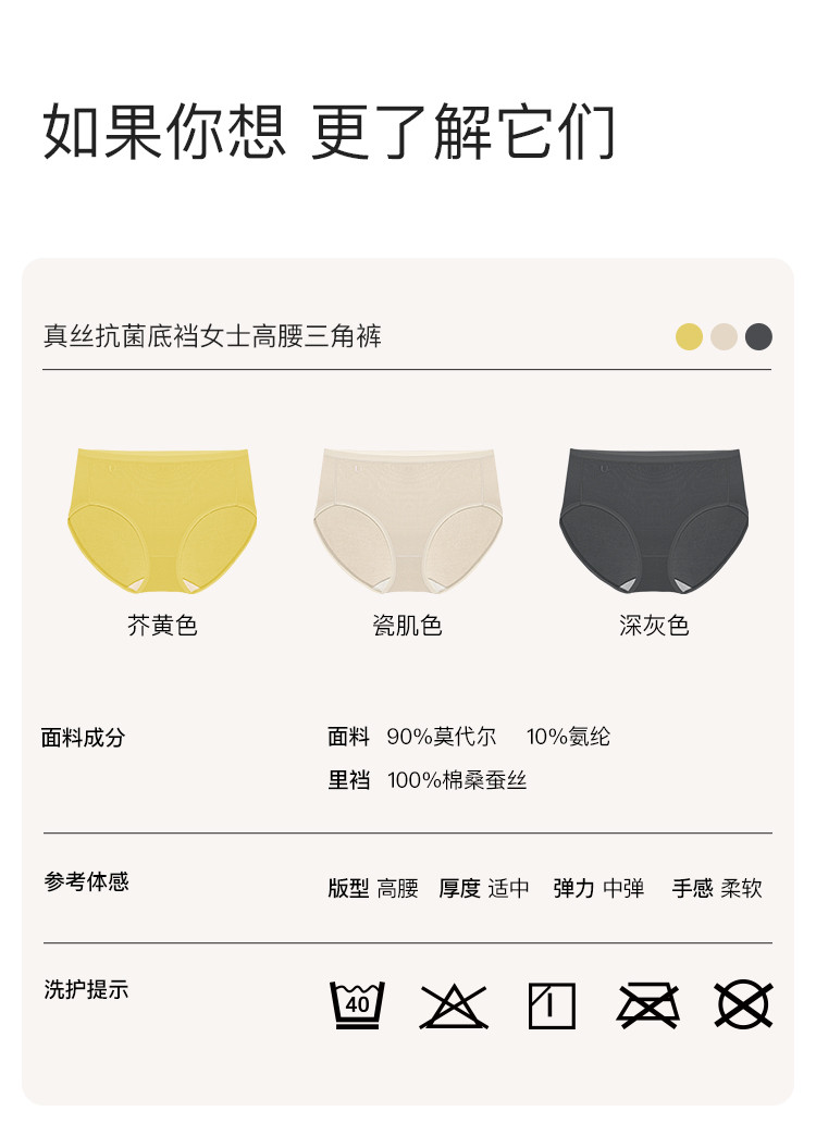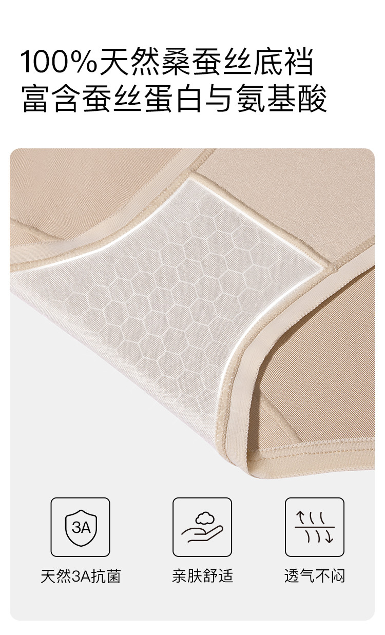 商品名称:【3A抗菌档】3条装100%桑蚕丝底档三角裤高腰不夹臀内裤女 372288