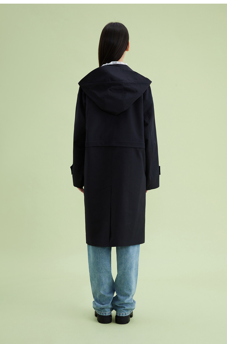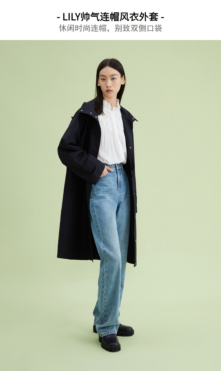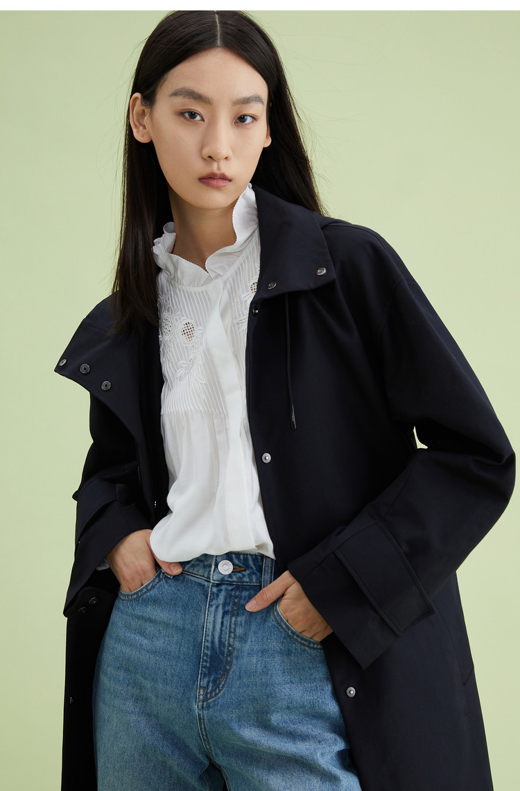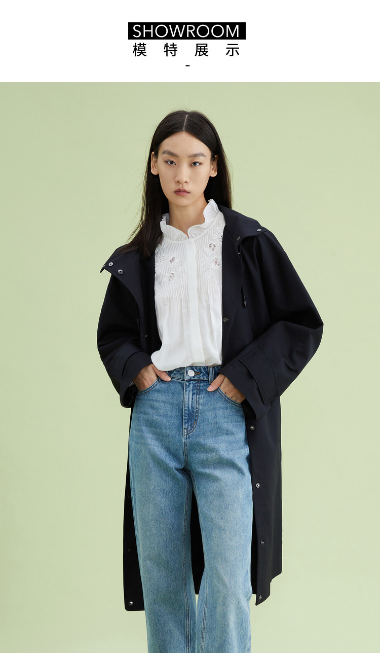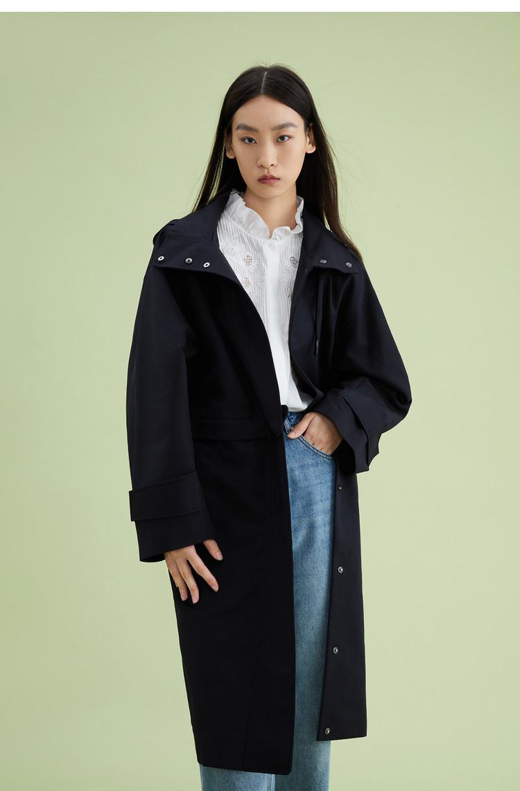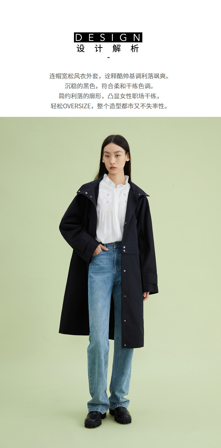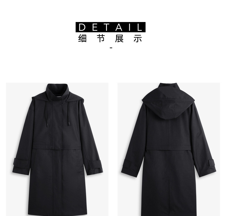 商品名称:春季简约帅气干练连帽长款风衣外套 201115