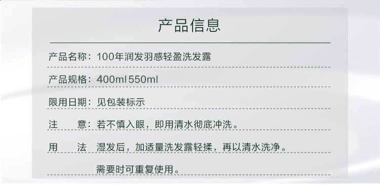 商品名称:100年润发 羽感轻盈洗发露(400ml)