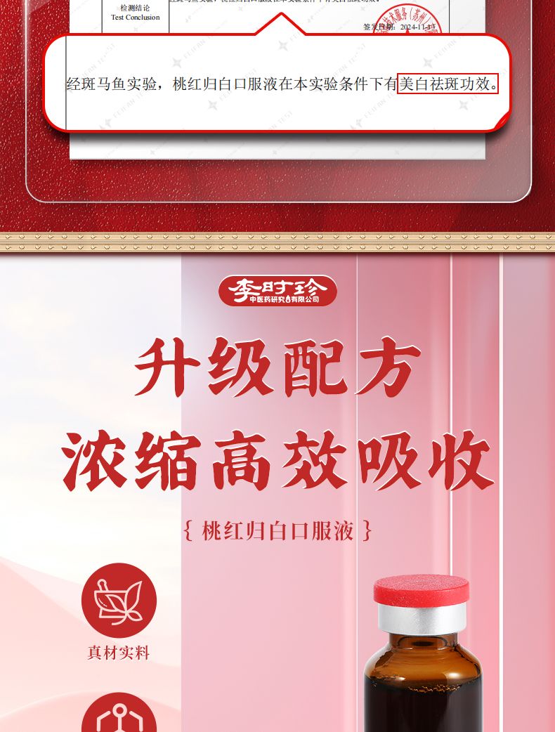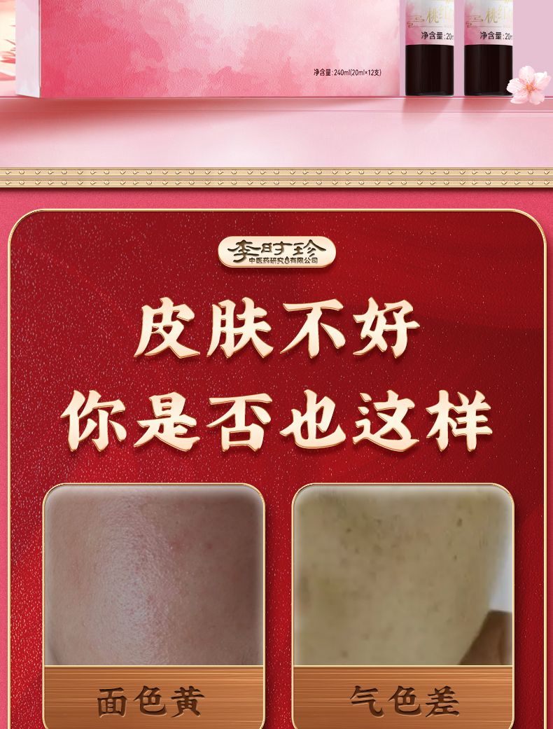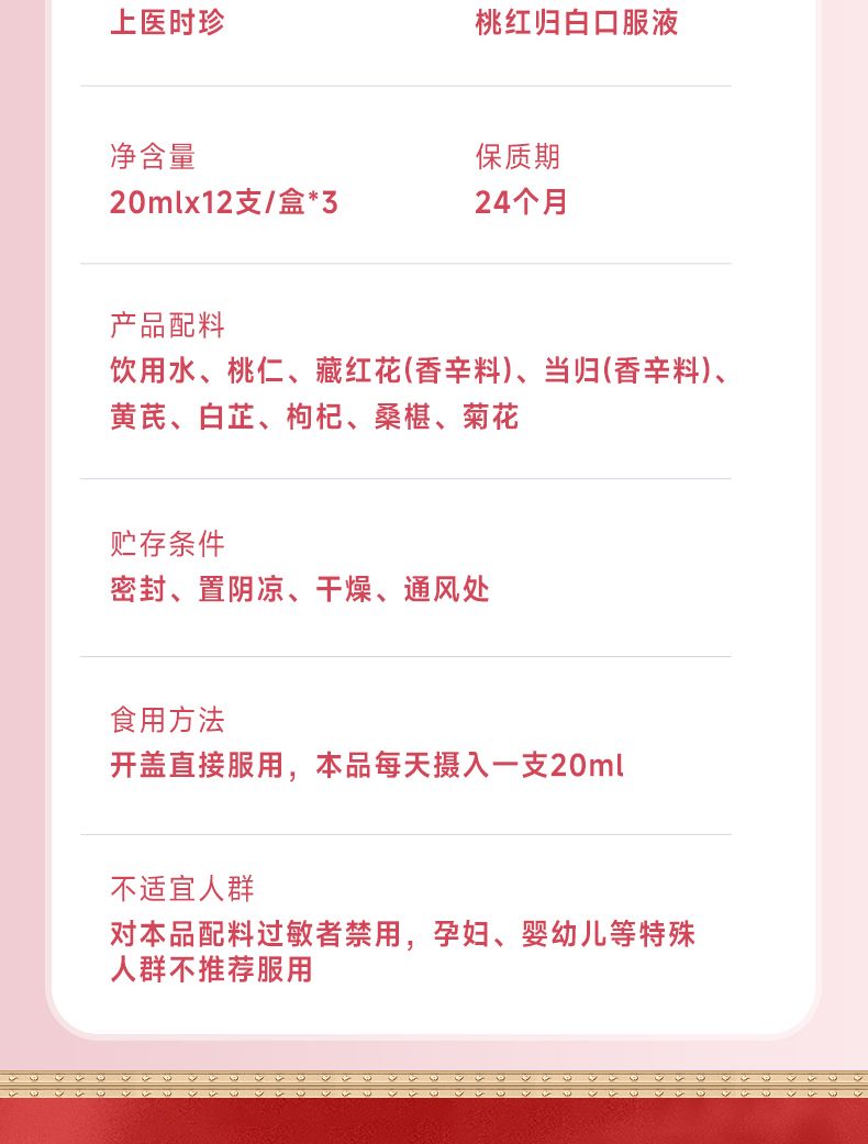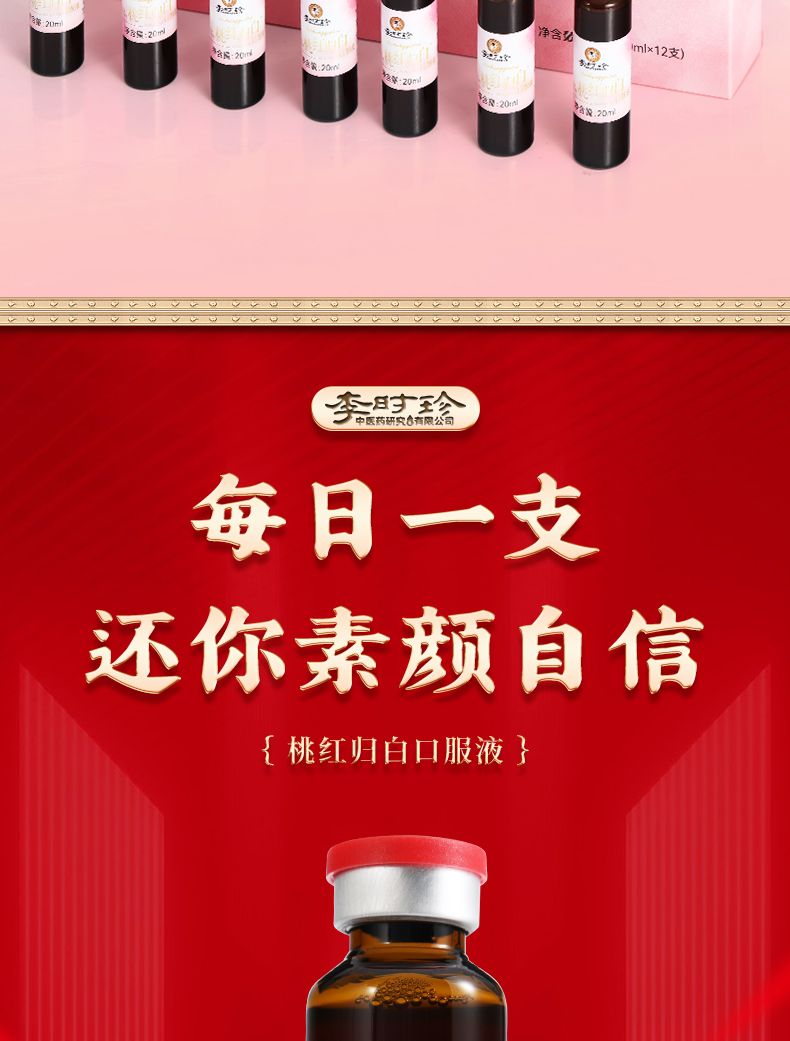 商品名称:3盒 李时珍 桃红归白 红桃K口服液 20ml*12支