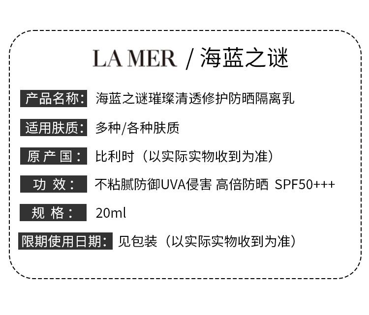 商品名称:La Mer/海蓝之谜 璀璨防晒隔离乳 20ML