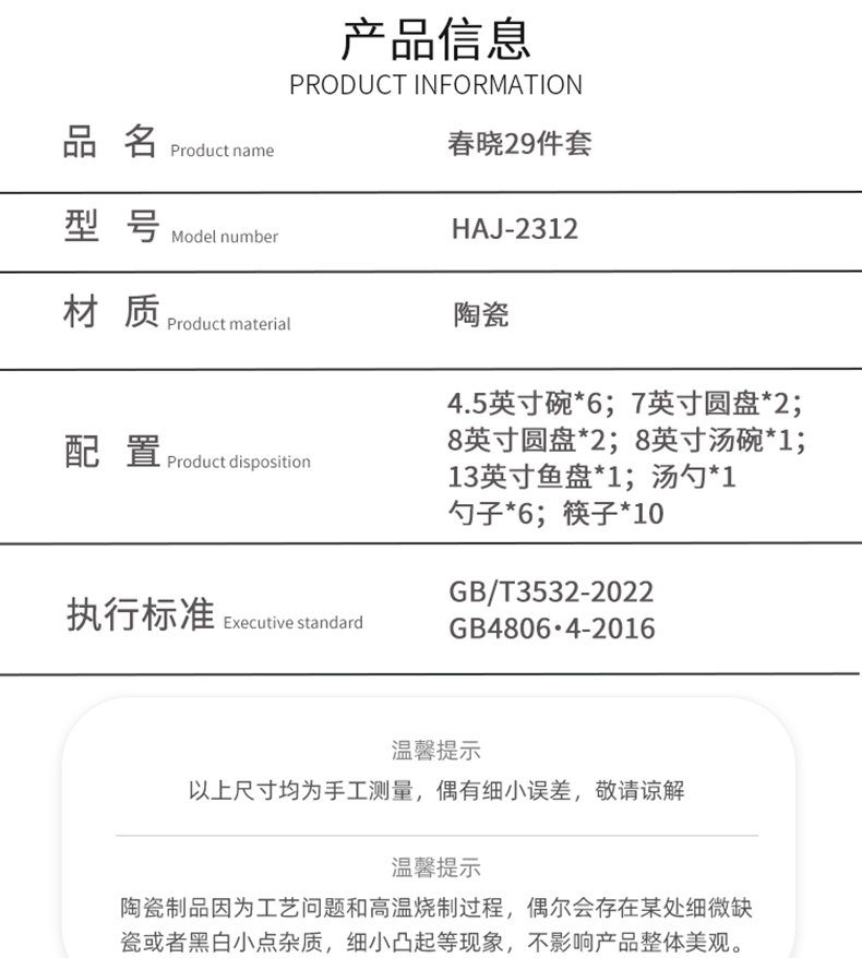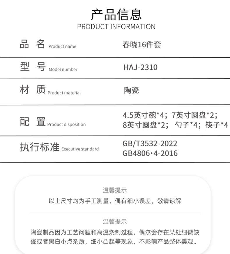商品名称:HOAIJA/豪爱佳春晓餐具系列
