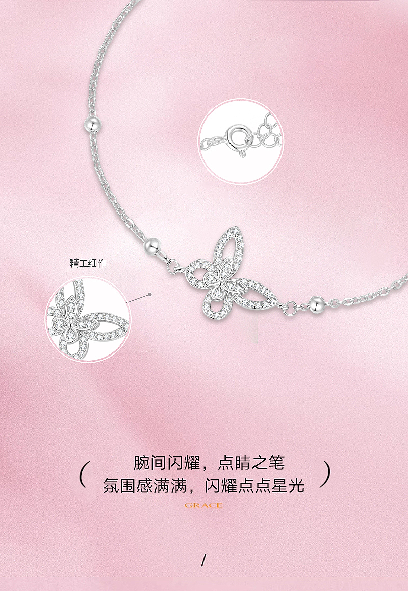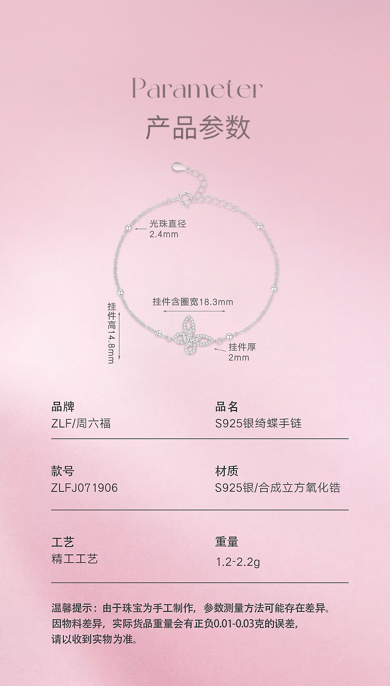 商品名称:周六福S925银绮蝶手链ZLFJ071906