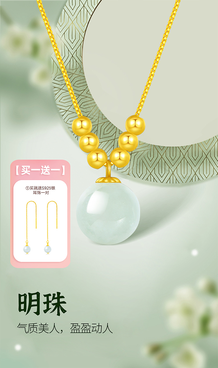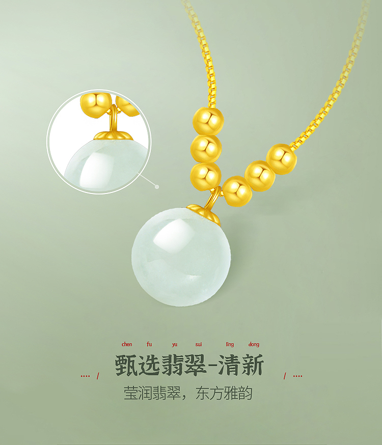 周六福翡翠明珠项链+18K金珠ZLFY061935