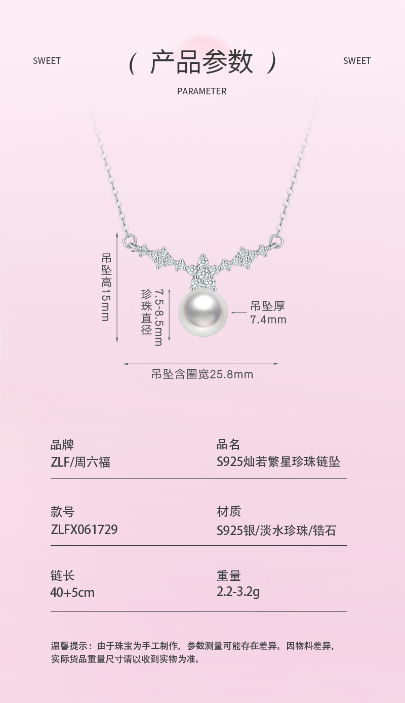 商品名称:周六福S925灿若繁星珍珠项链ZLFX061729