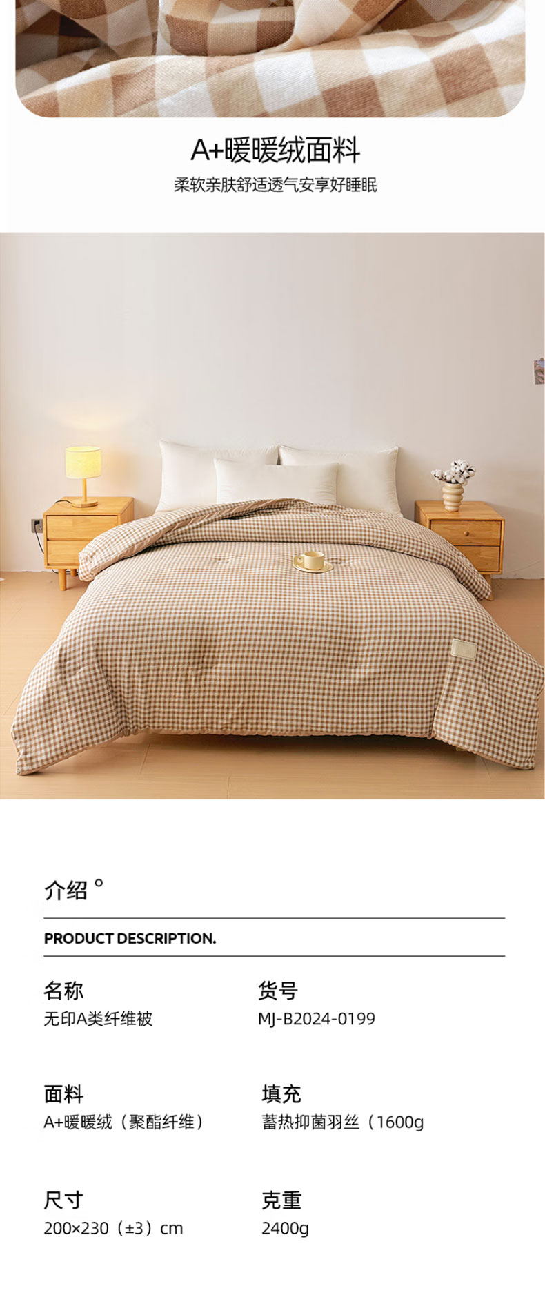 商品名称:无印良品A类纤维被200*230cm 2400g
