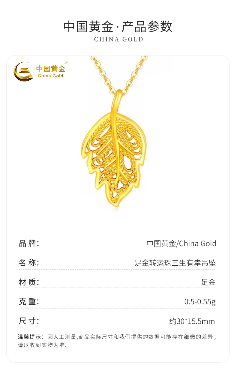 商品名称:China Gold/中国黄金足金转运珠三生有幸吊坠ZGHJ241825