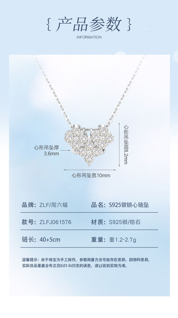 商品名称:周六福S925银锁心项链ZLFJ061576