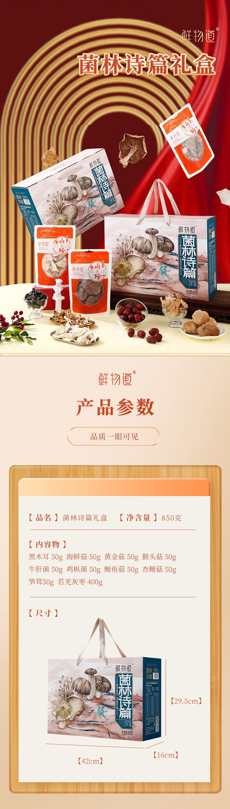 商品名称:鲜物道山珍菌林诗篇干货礼盒850g