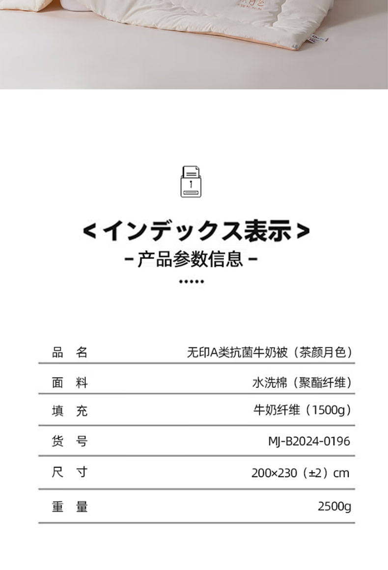 商品名称:无印良品茶颜月色A类抗菌牛奶被200*230cm 2500g
