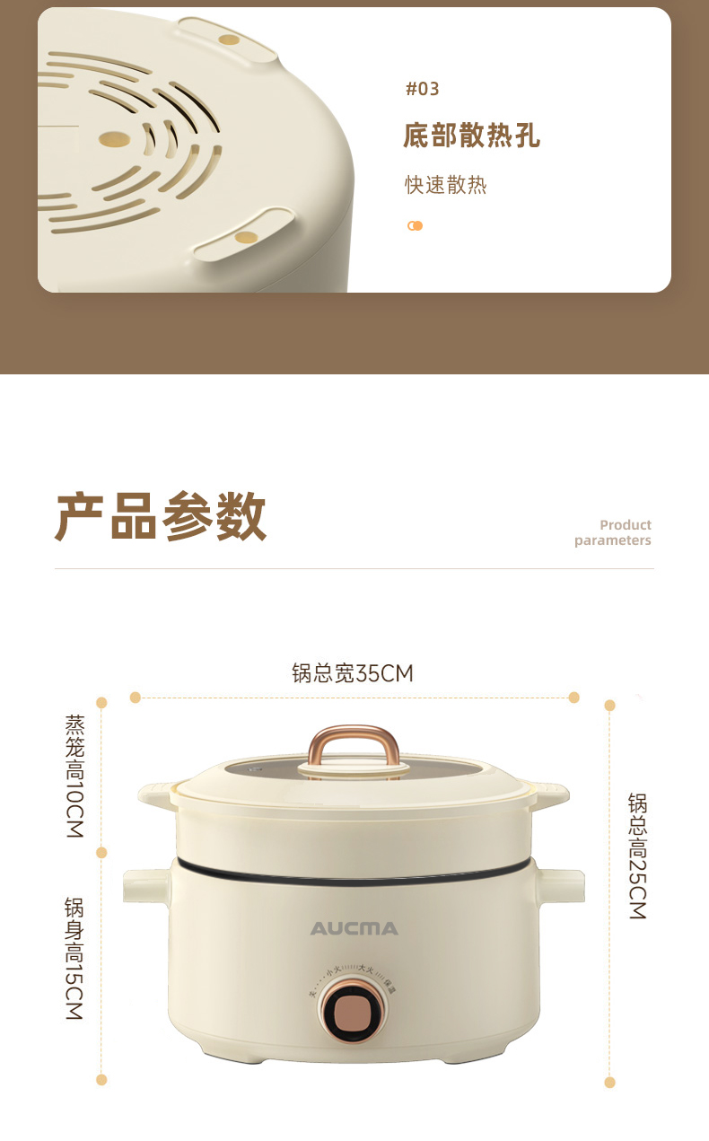AUCMA/澳柯玛3升多功能电火锅AHG-30HY1