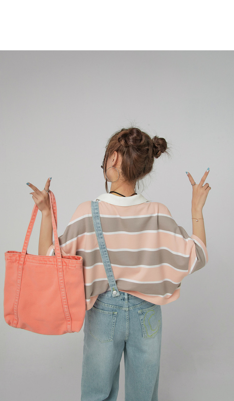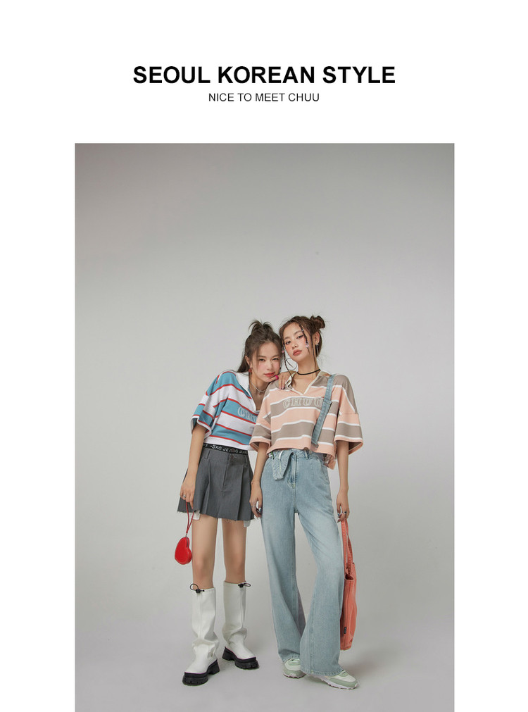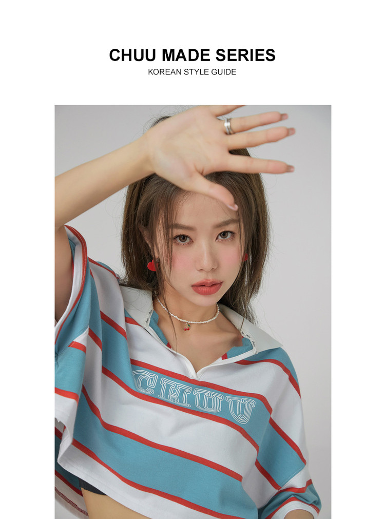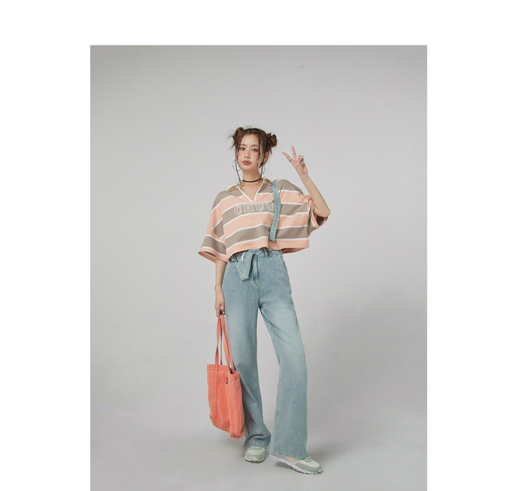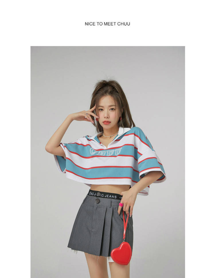 商品名称:撞色条纹POLO领短袖T恤女夏宽松短上衣 428563