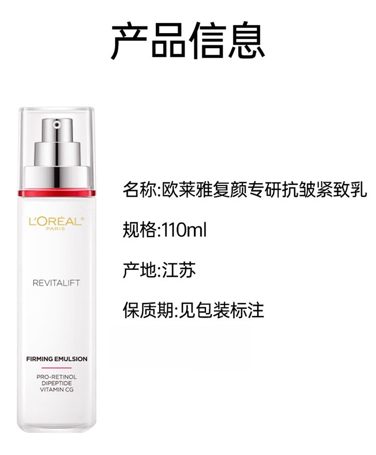 商品名称:L'OREAL/欧莱雅复颜专研抗皱紧致乳110ml 新旧包装随机不接受指定