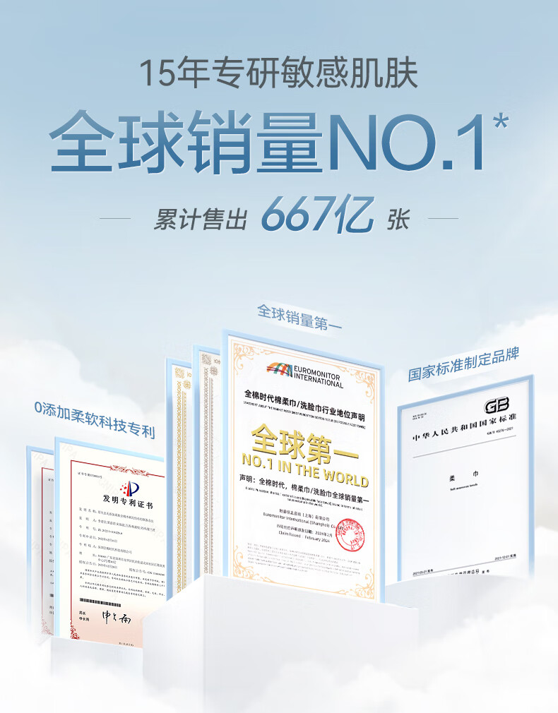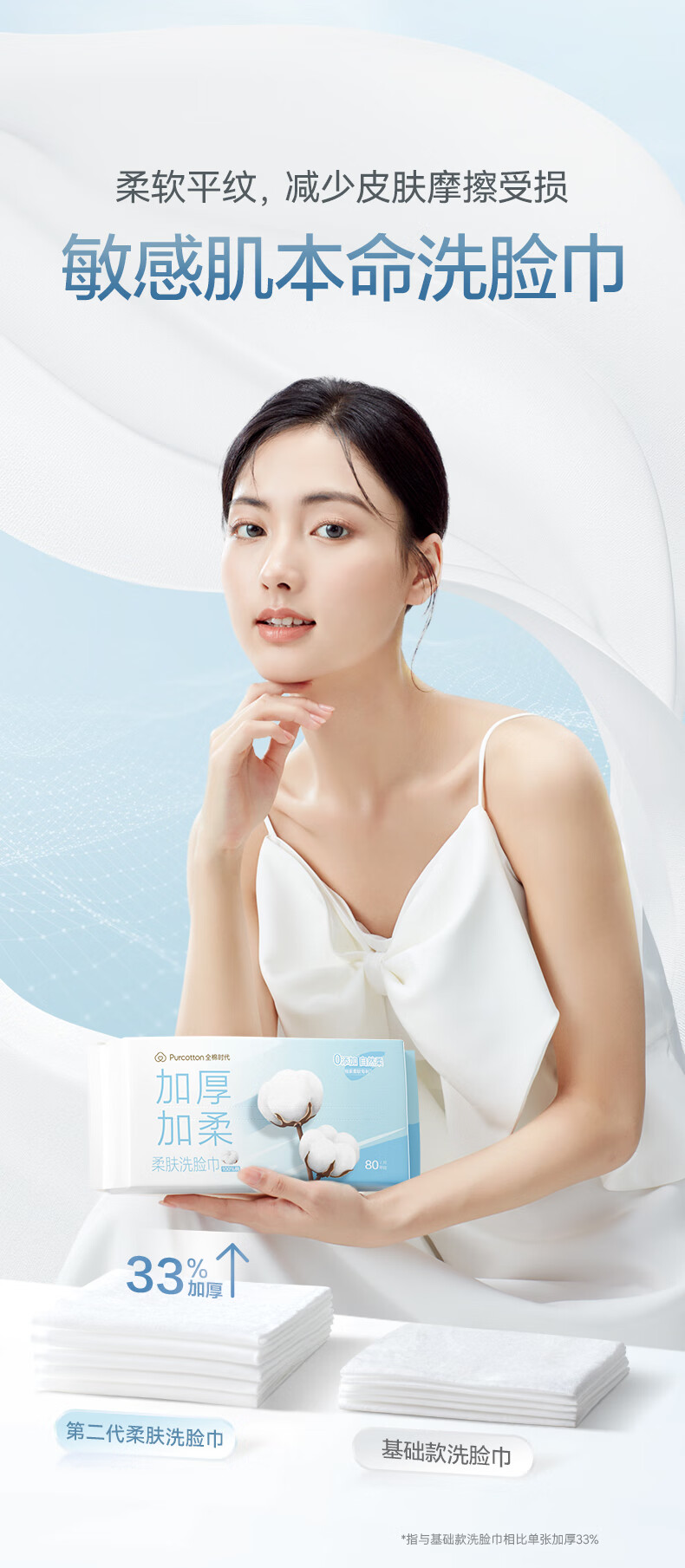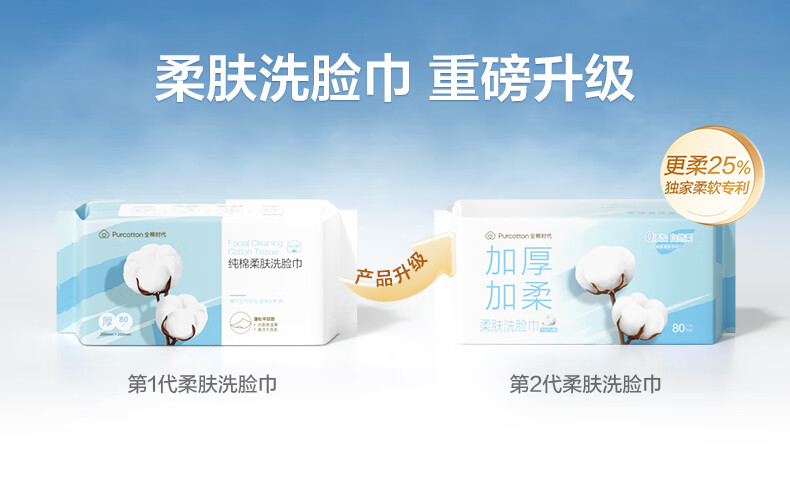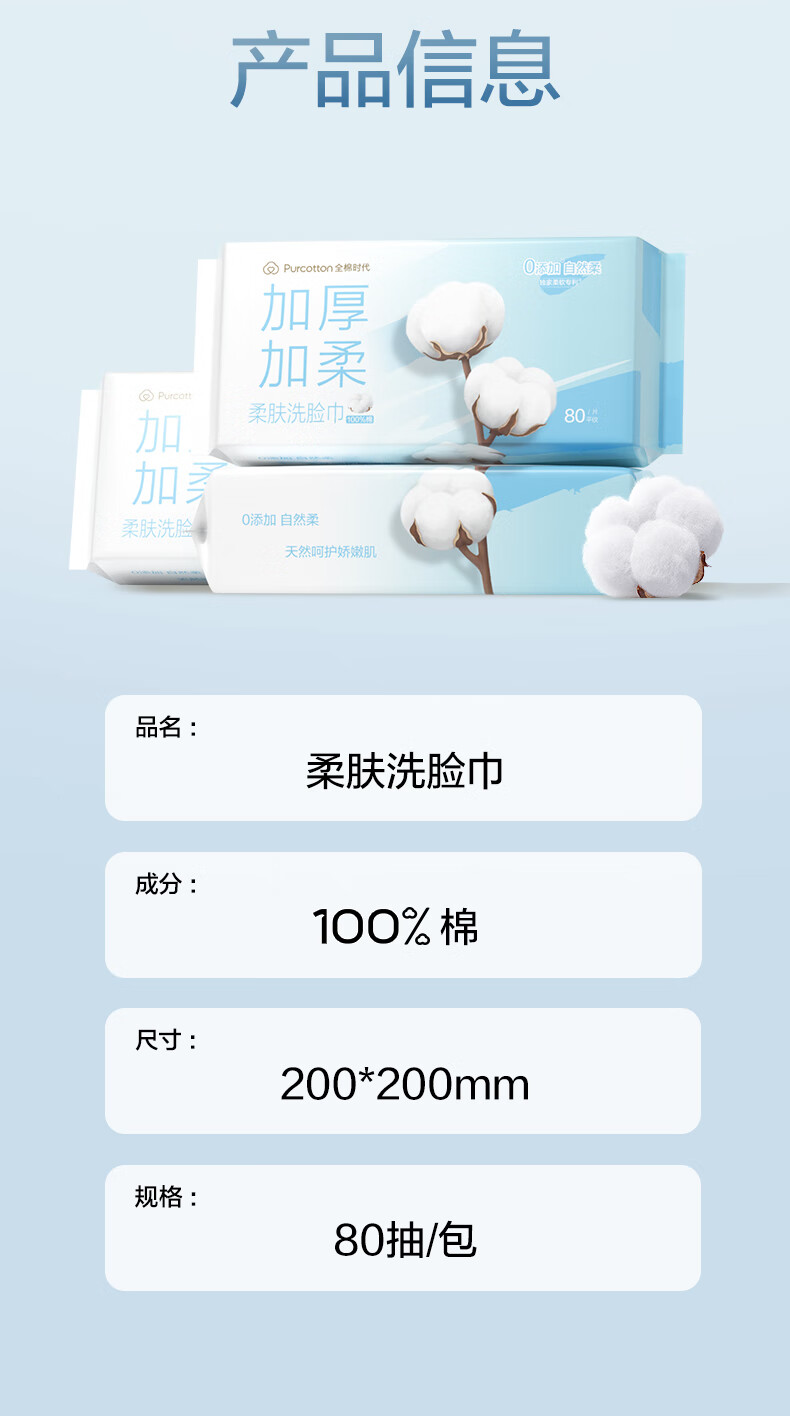 商品名称:Purcotton/全棉时代加厚加柔柔肤洗脸巾80片*3包
