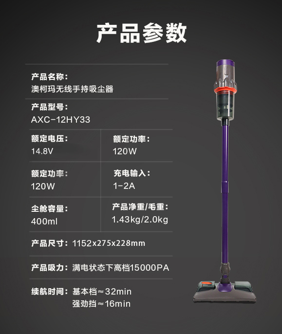 商品名称:AUCMA/澳柯玛无线手持吸尘器AXC-12HY33