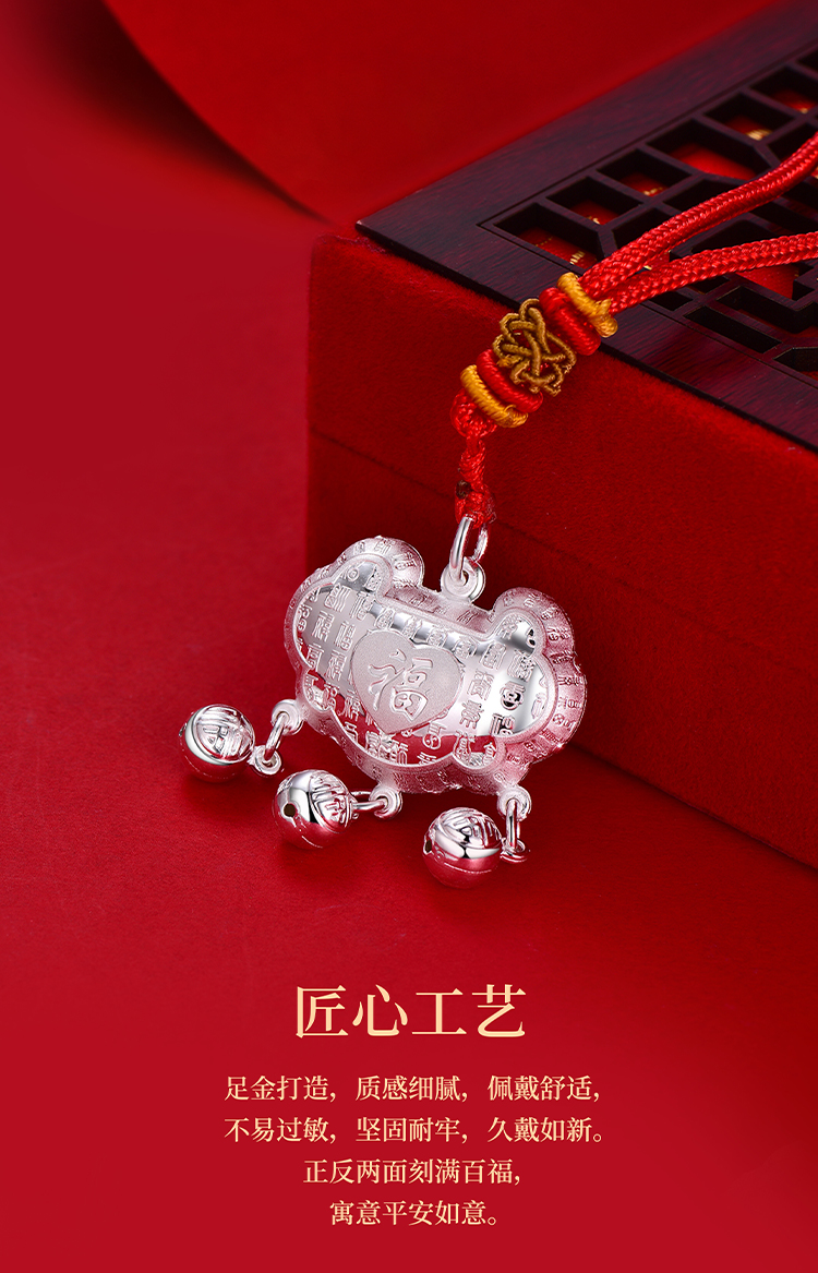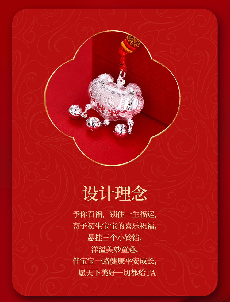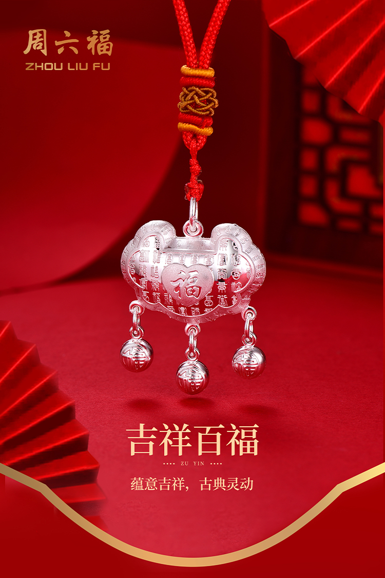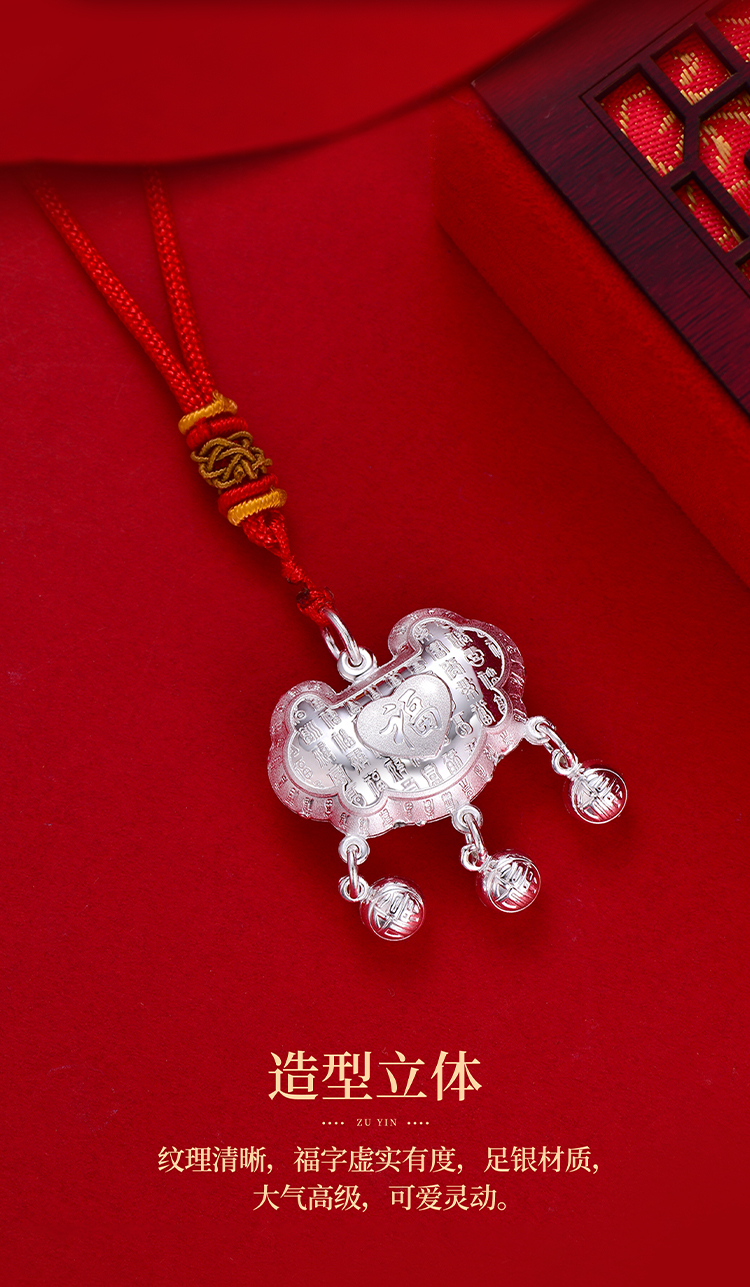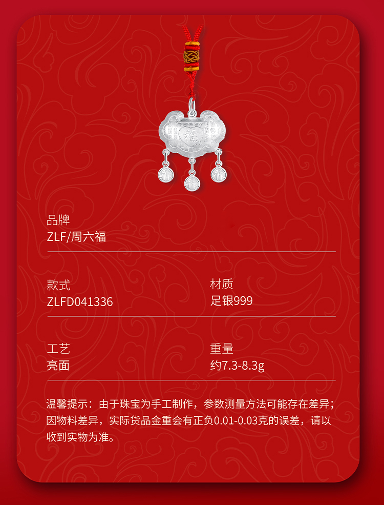 商品名称:周六福足银吉祥百福长命锁ZLFD041336