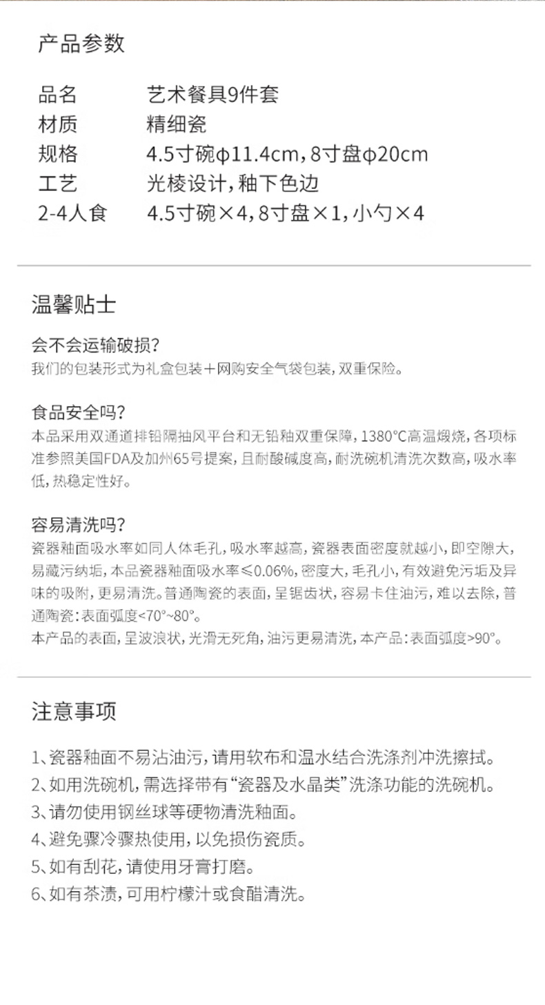 商品名称:PICASSO/毕加索HOME系列餐具九件套P219C-09