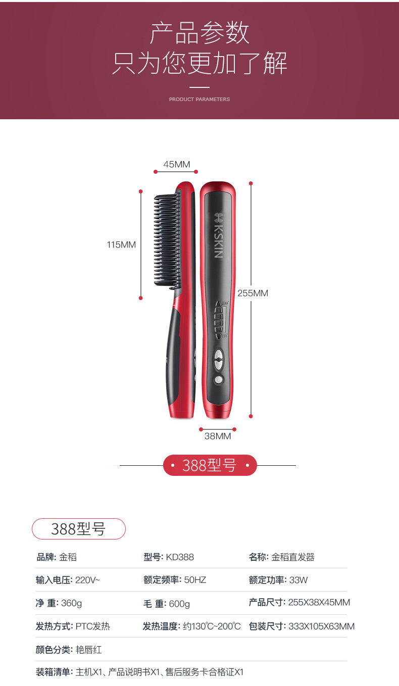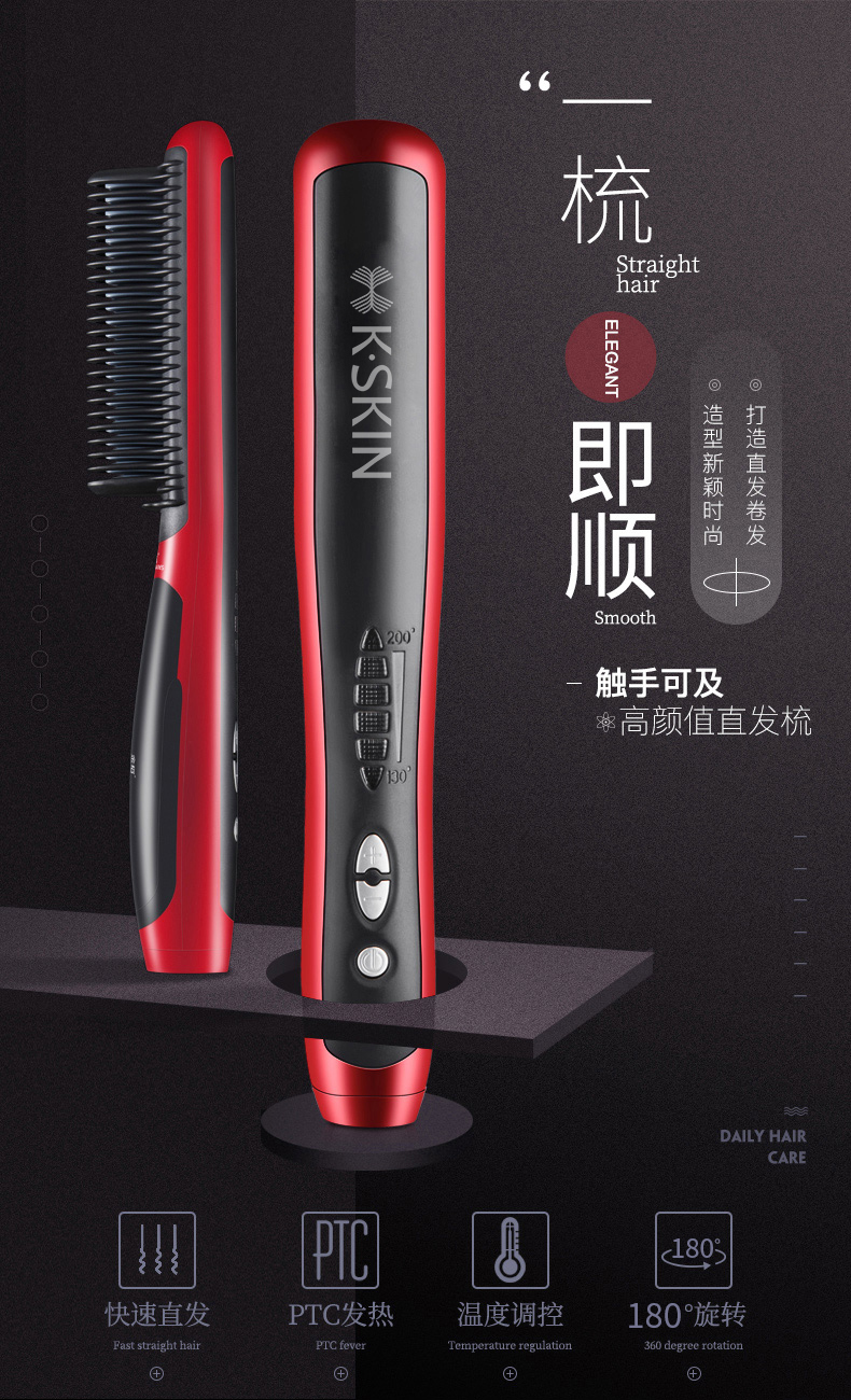 商品名称:K.SKIN/金稻直发梳-红色KD388