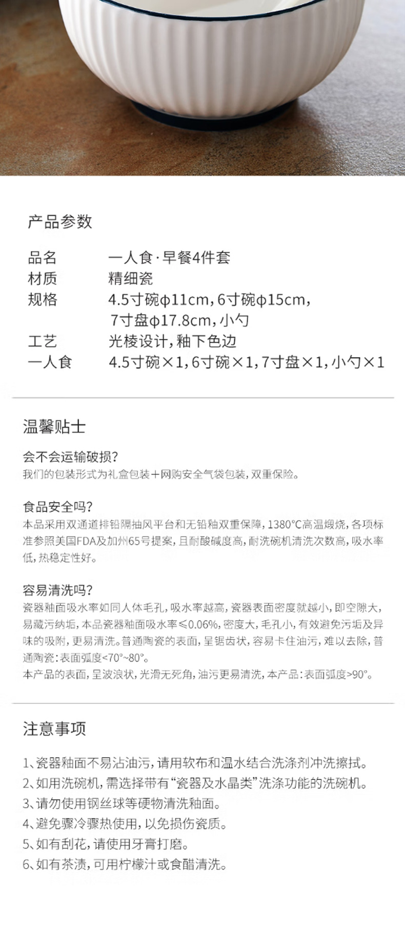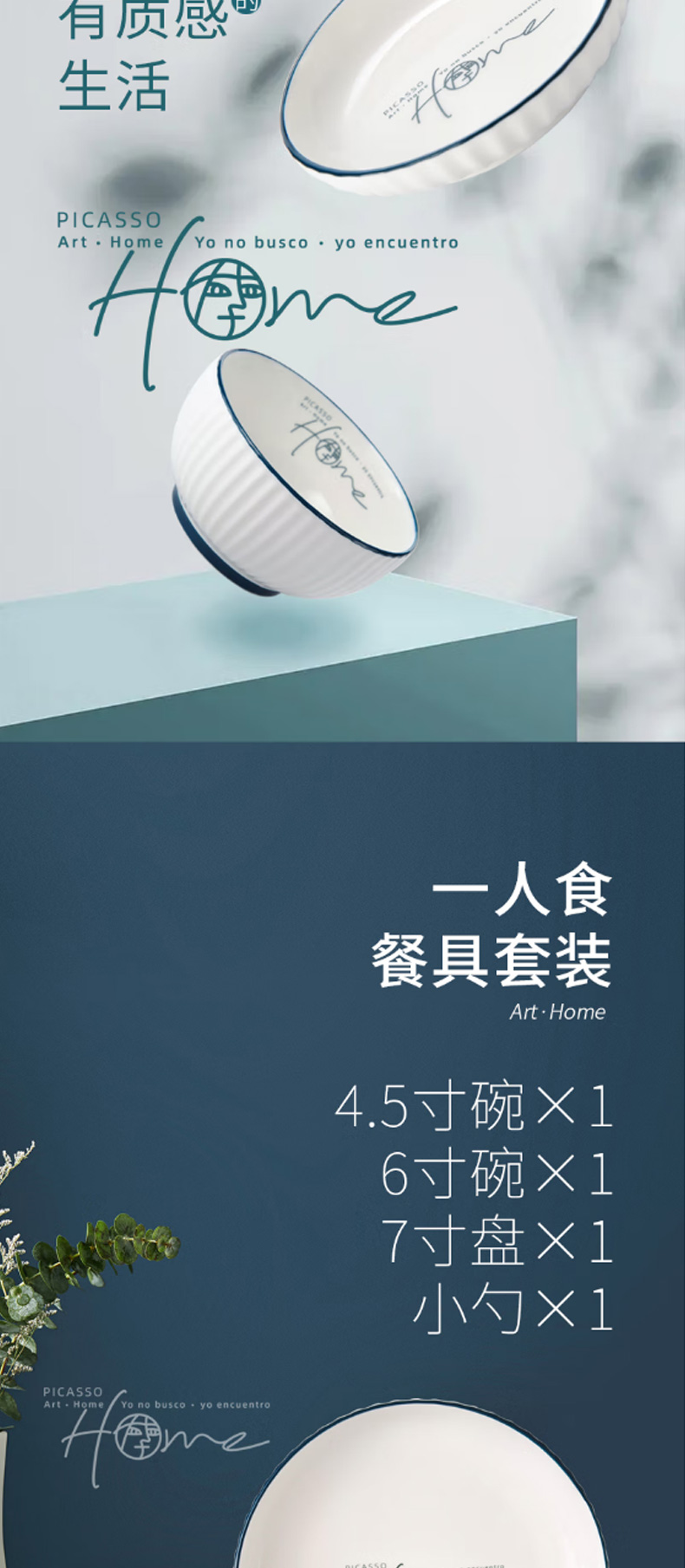 商品名称:PICASSO/毕加索HOME系列一人食餐具四件套P219A-04