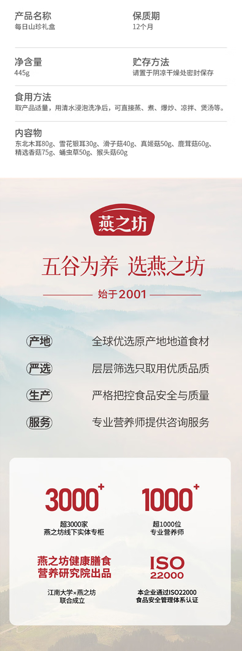 商品名称:燕之坊每日山珍干货礼盒445g