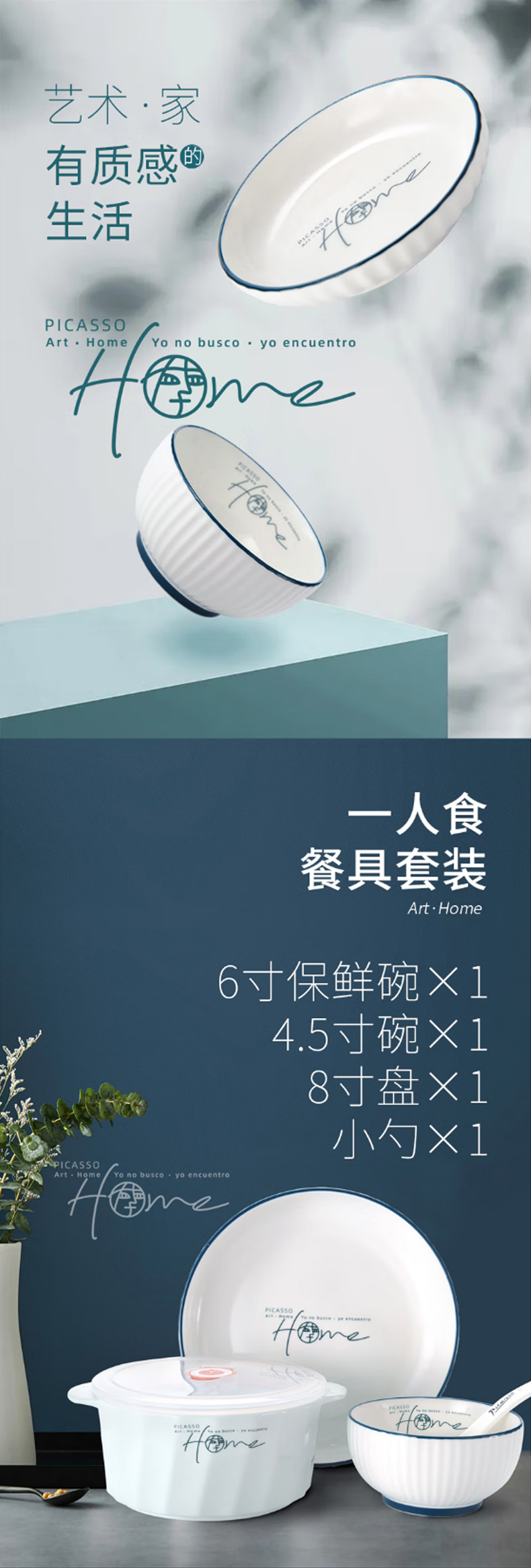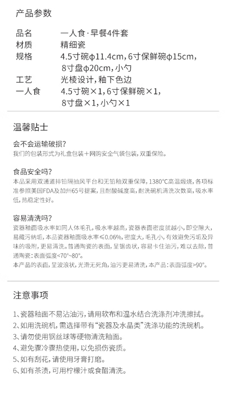 商品名称:PICASSO/毕加索HOME系列一人食早餐餐具四件套P219B-04