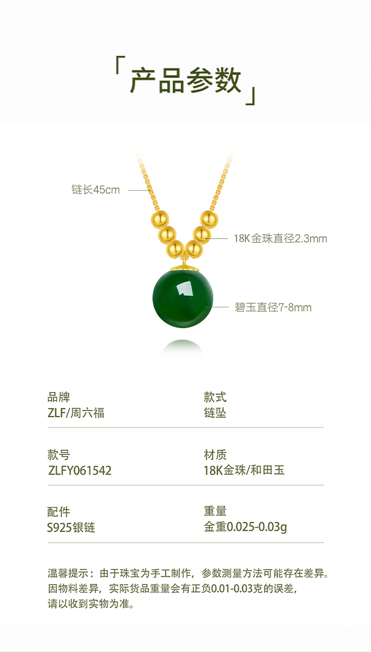 商品名称:周六福晚念清禾链坠ZLFY061542