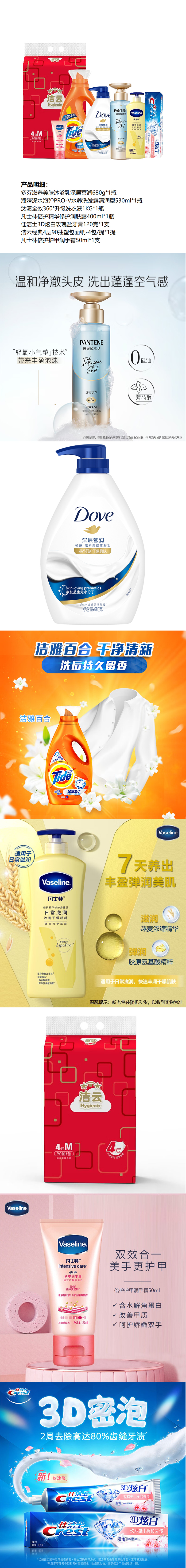 多芬潘婷汰渍凡士林佳洁士洁云洗护用品套装
