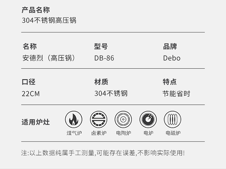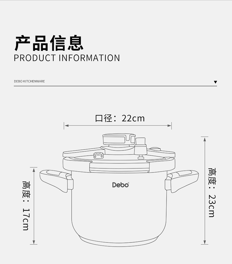 商品名称:Debo/德铂22cm安德烈高压锅DB-86