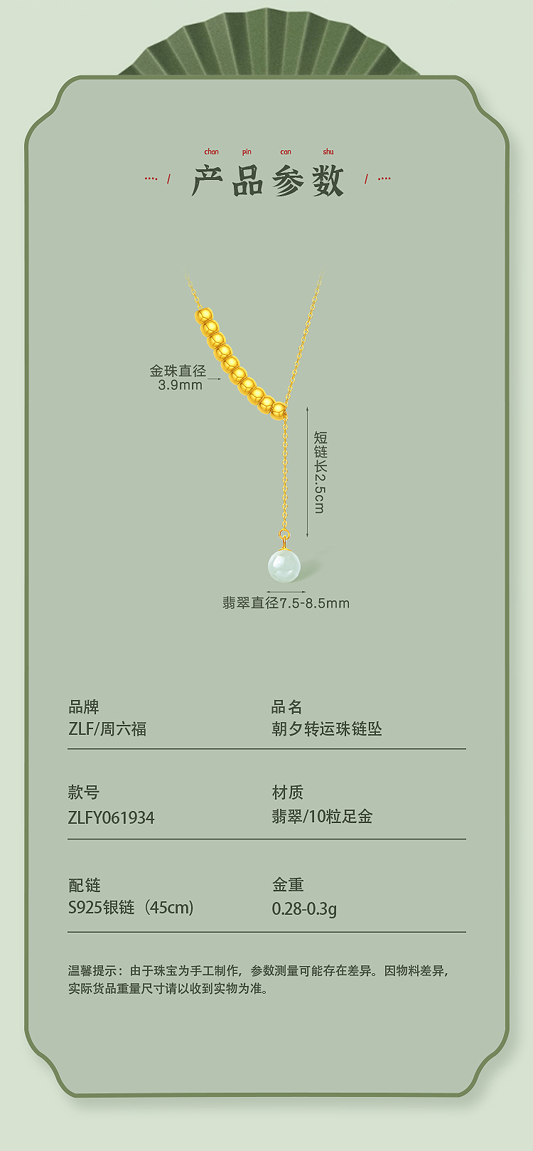 商品名称:周六福朝夕转运珠足金金珠项链ZLFY061934