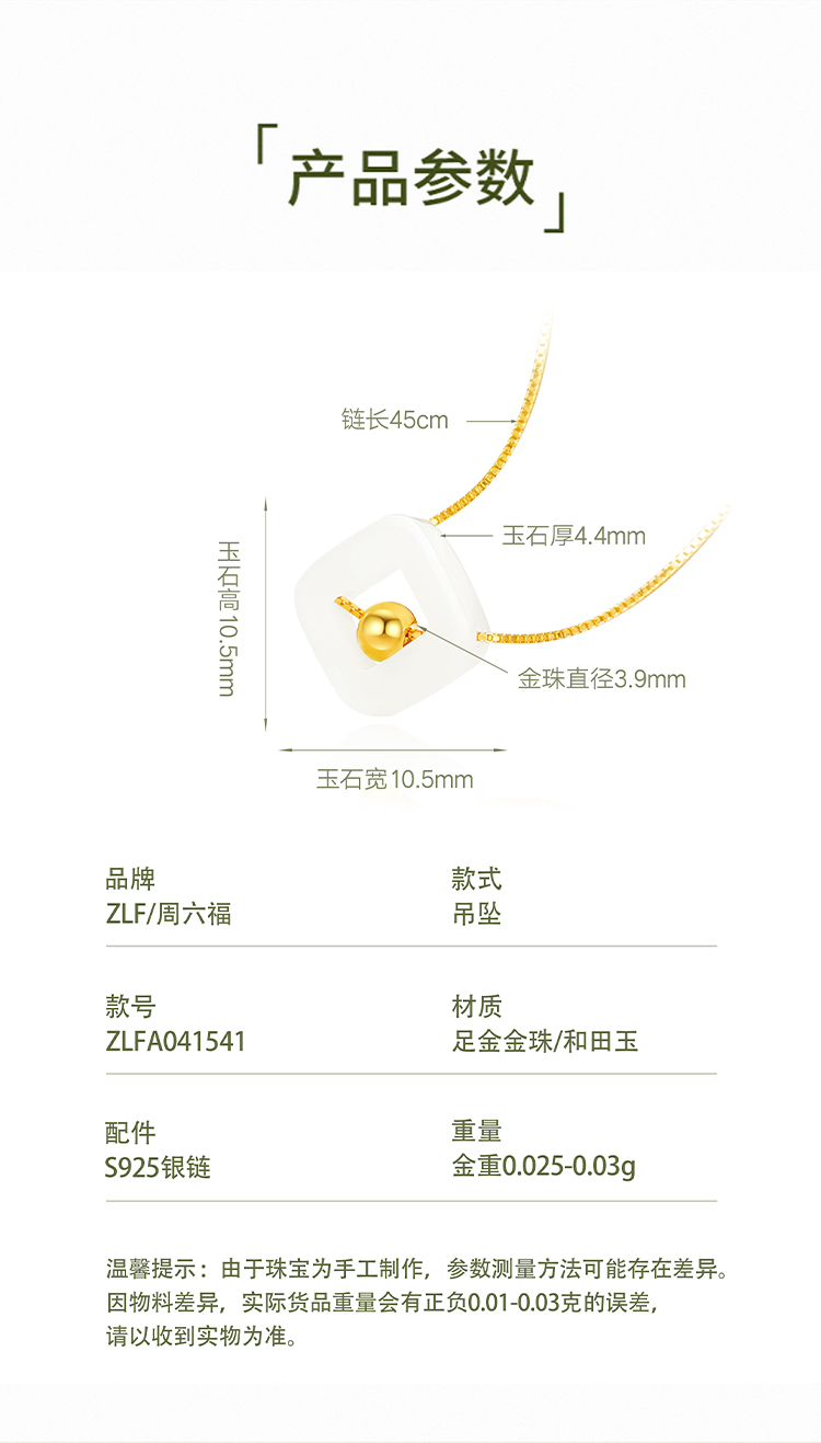 周六福一见倾心吊坠+S925银链ZLFA041541