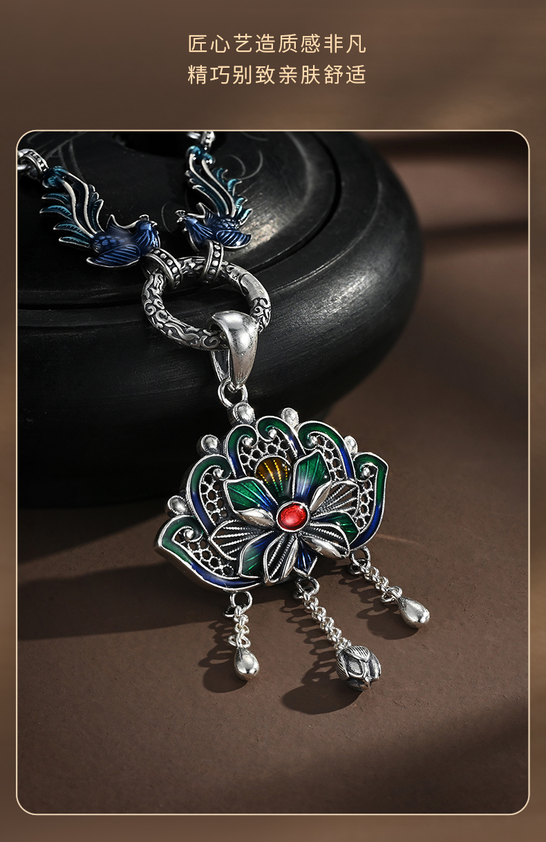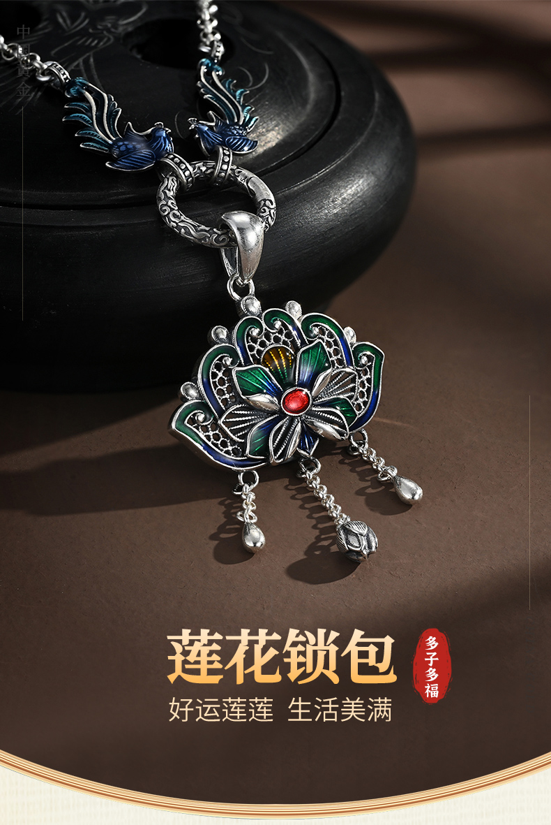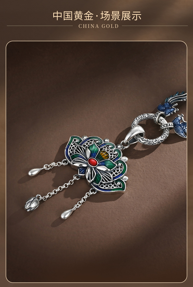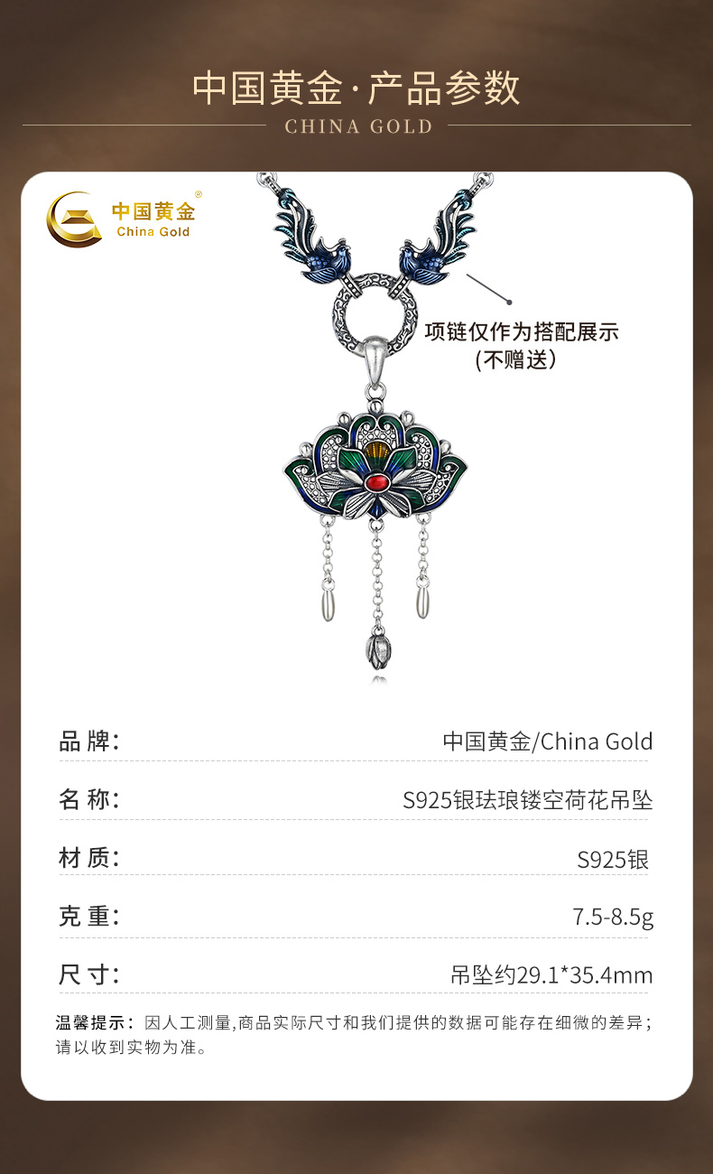 商品名称:China Gold/中国黄金S925银珐琅镂空荷花吊坠ZGHJ231844