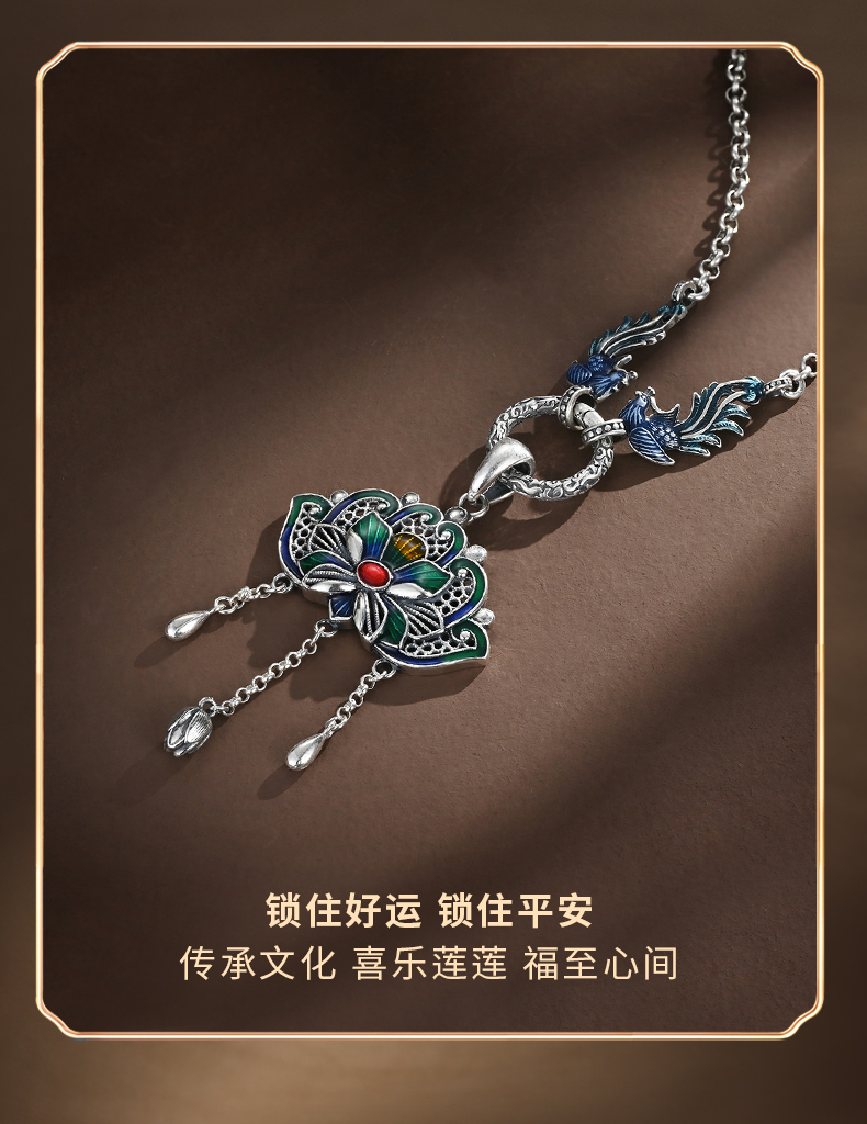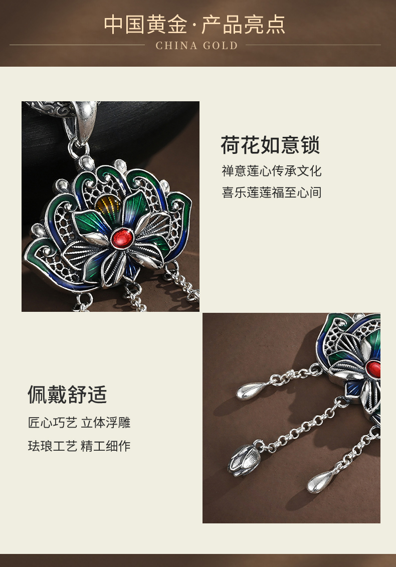 China Gold/中国黄金S925银珐琅镂空荷花吊坠ZGHJ231844