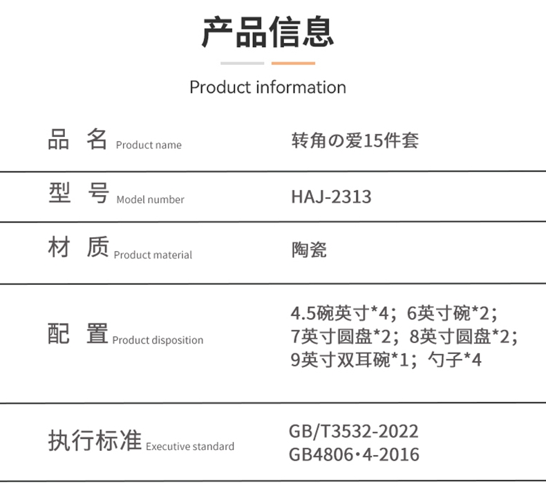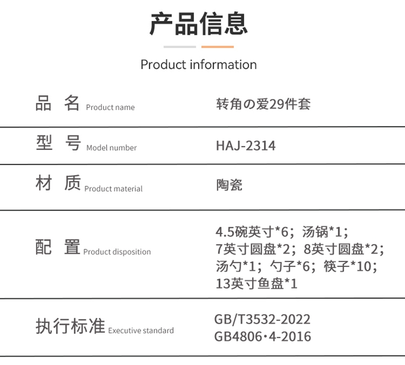 商品名称:HOAIJA/豪爱佳转角の爱餐具系列