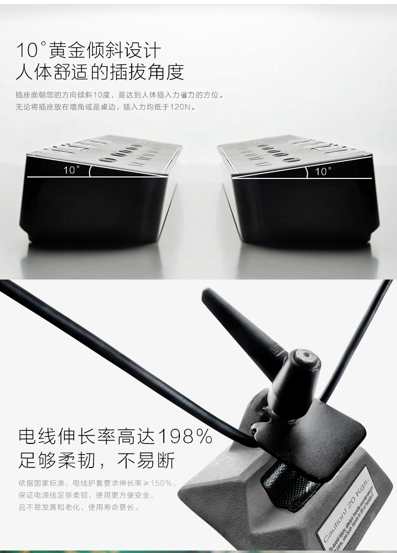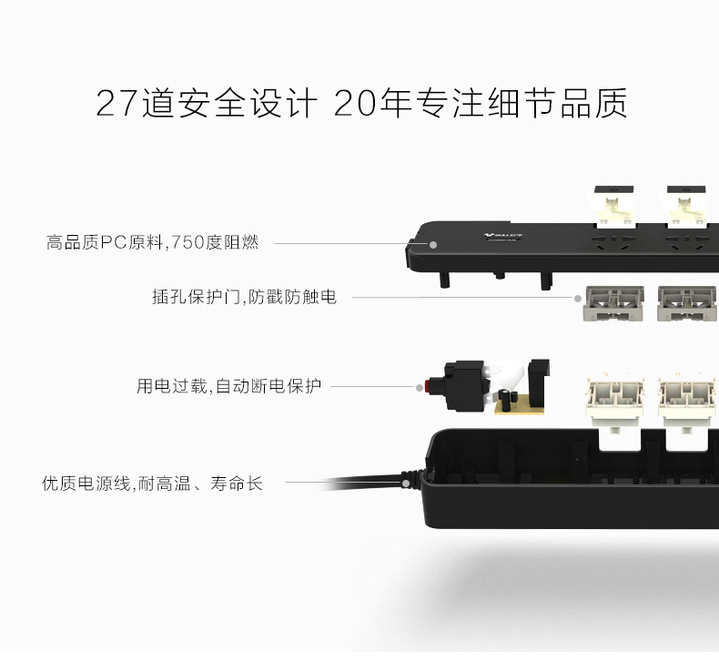 BULL/公牛1.8米三位五孔独立开关插座