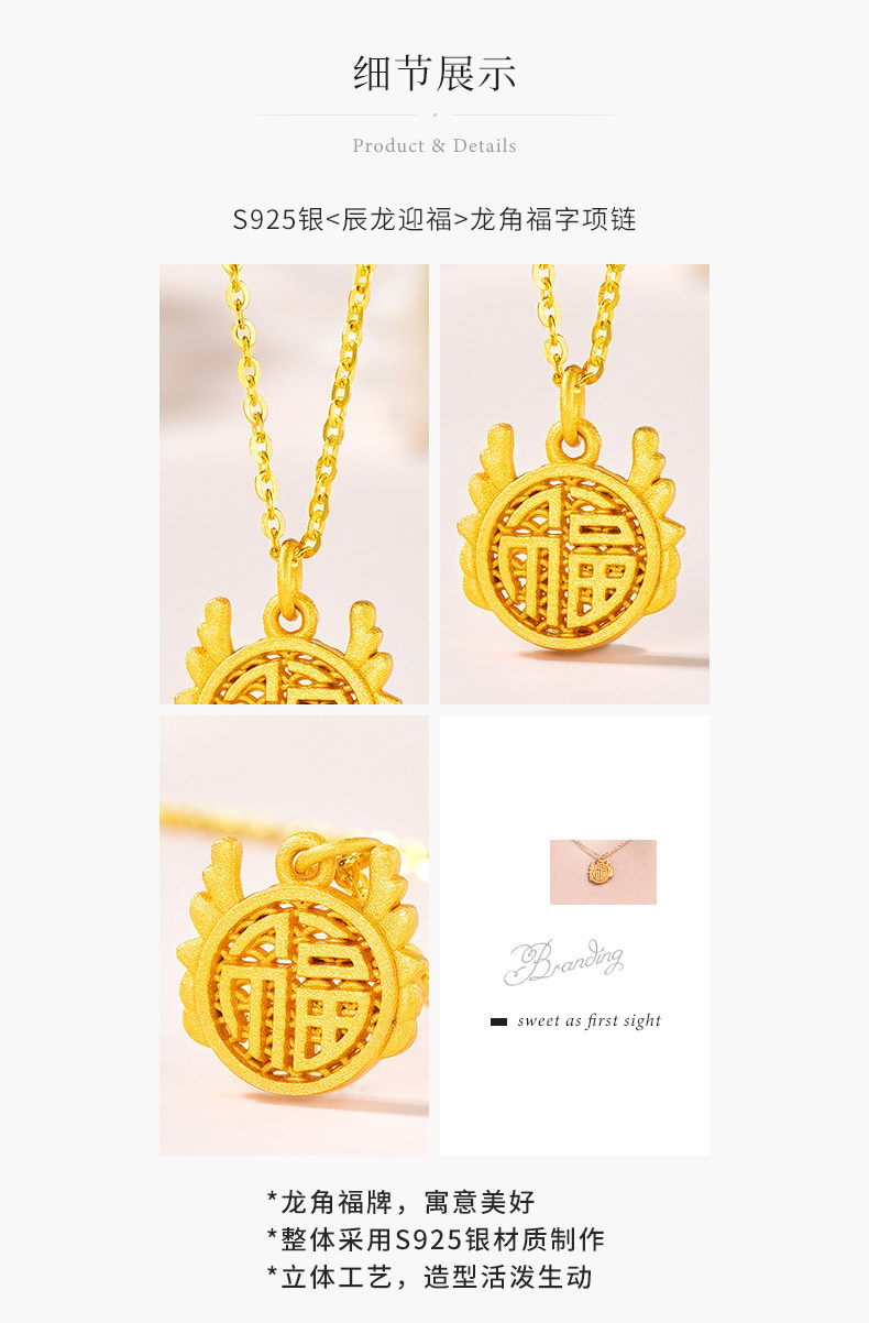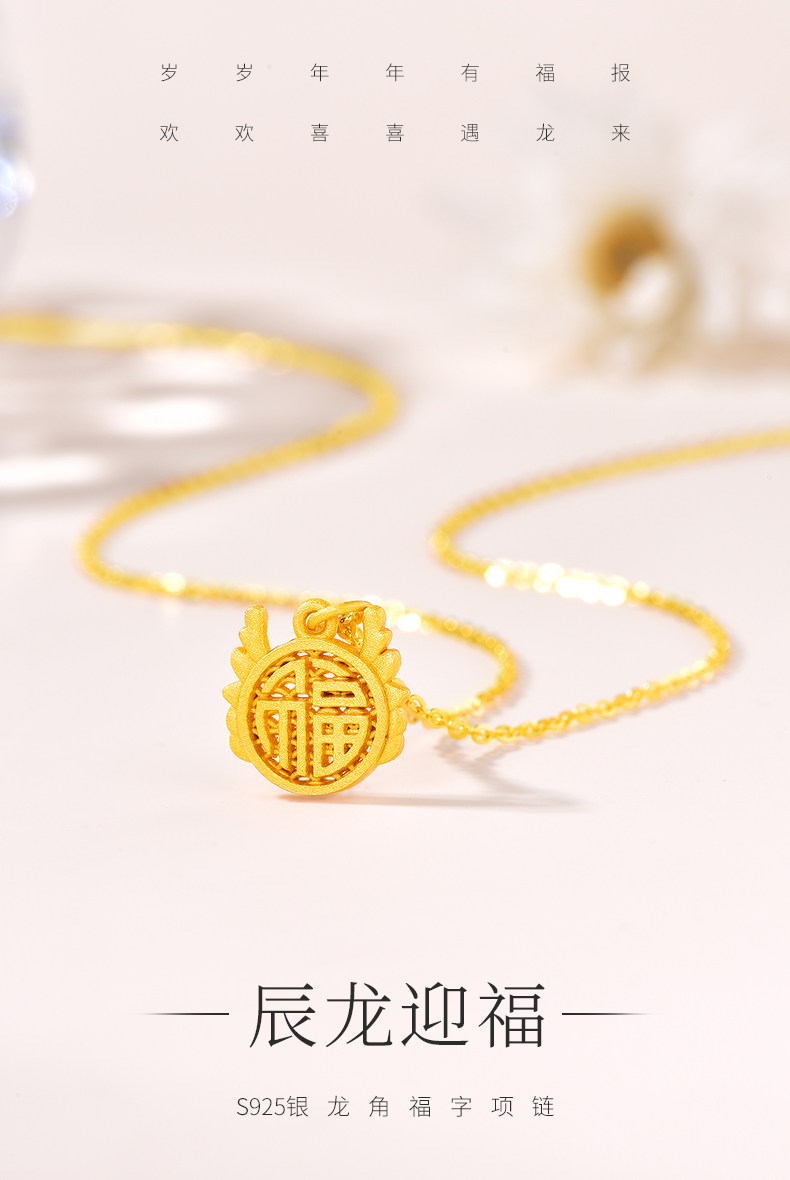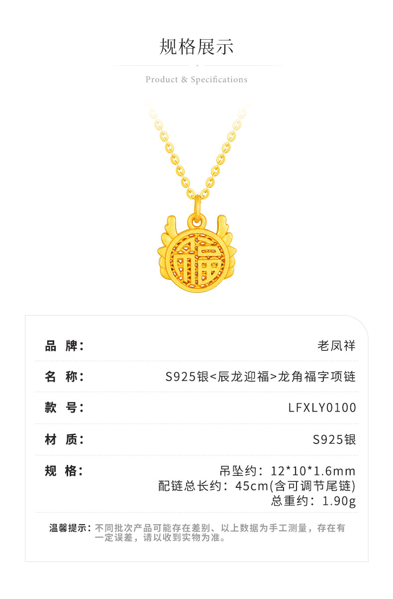 商品名称:老凤祥S925银辰龙迎福龙角福字项链LFXLY0100