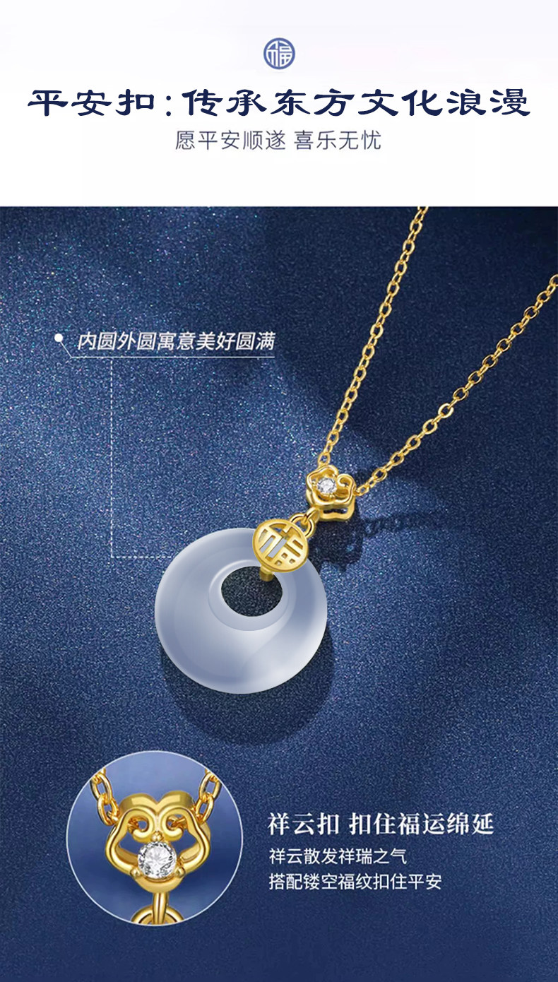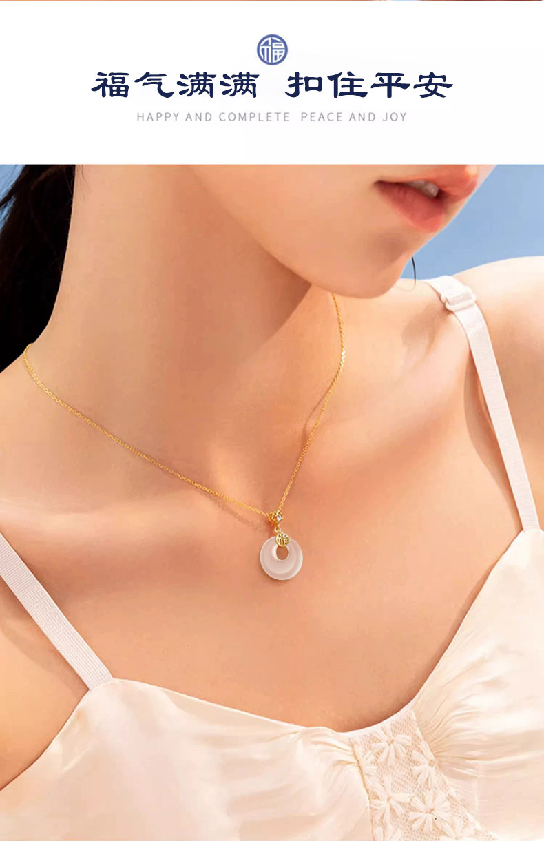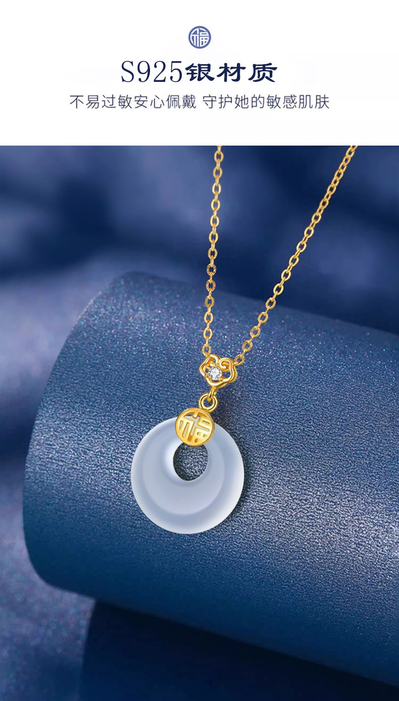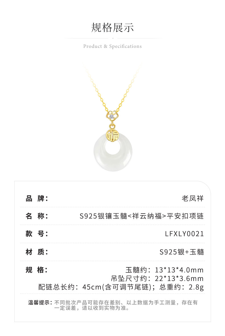 商品名称:老凤祥S925银镶玉髓祥云纳福平安扣项链LFXLY0021
