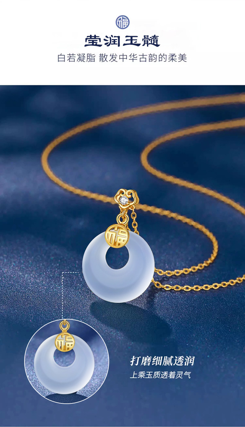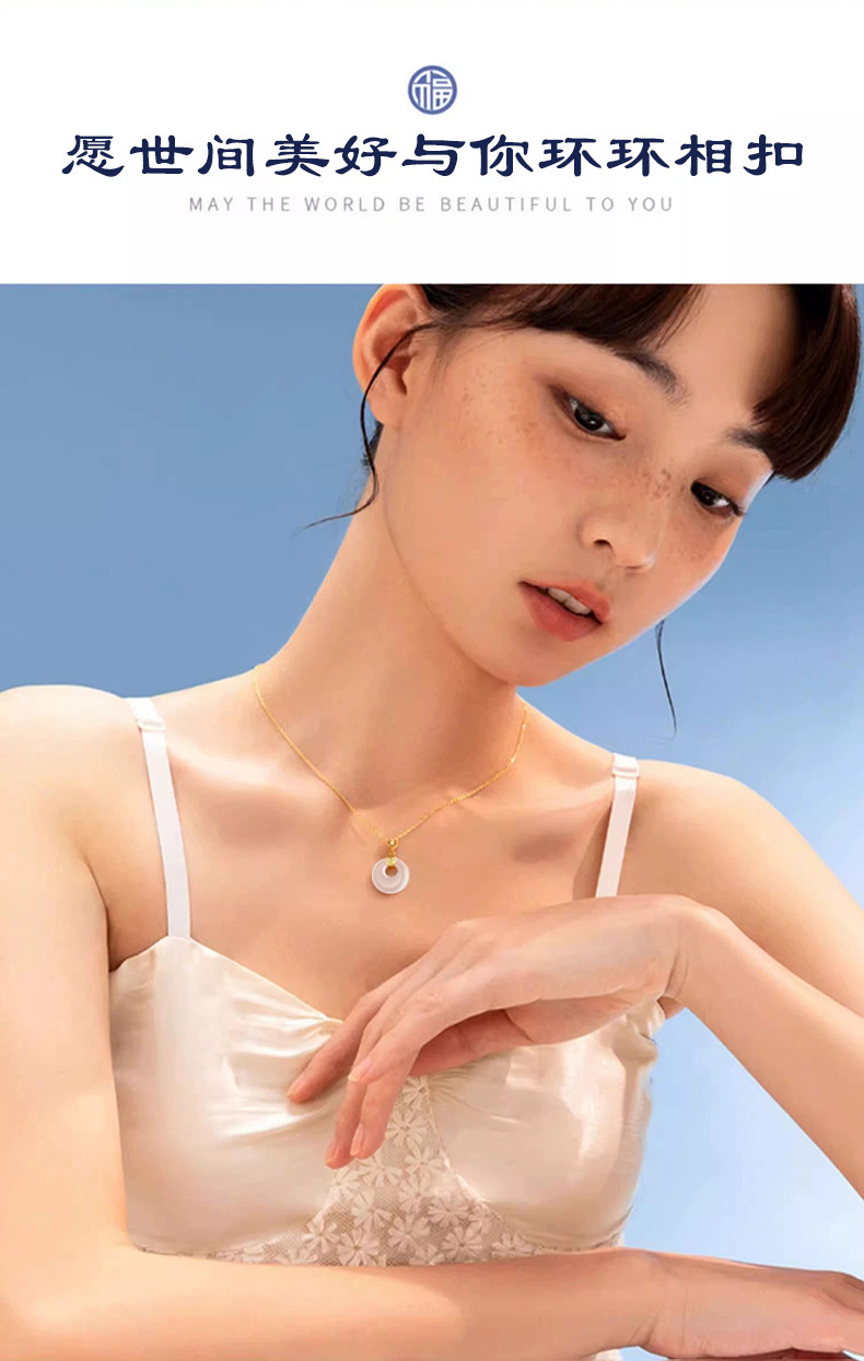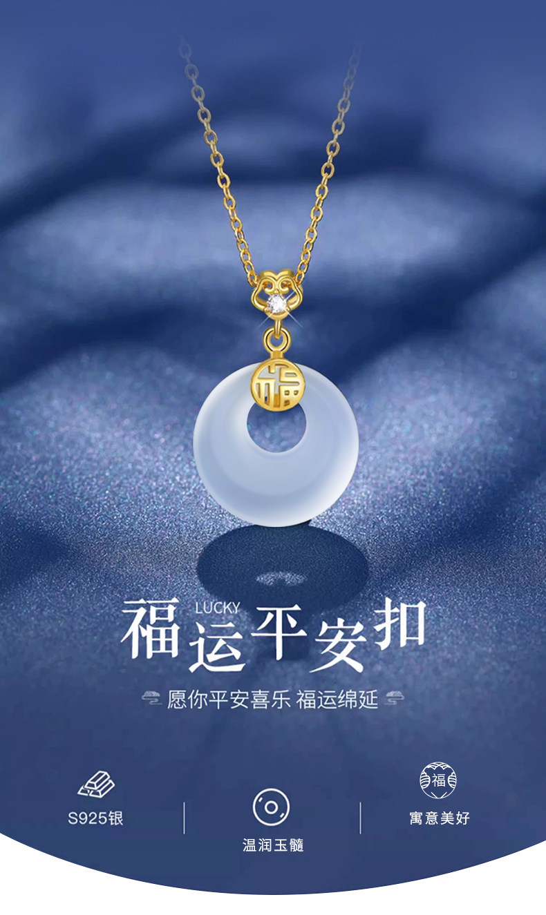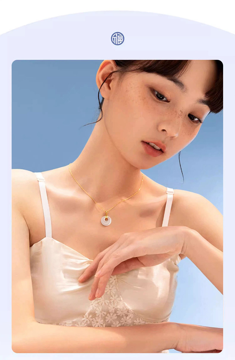 商品名称:老凤祥S925银镶玉髓祥云纳福平安扣项链LFXLY0021