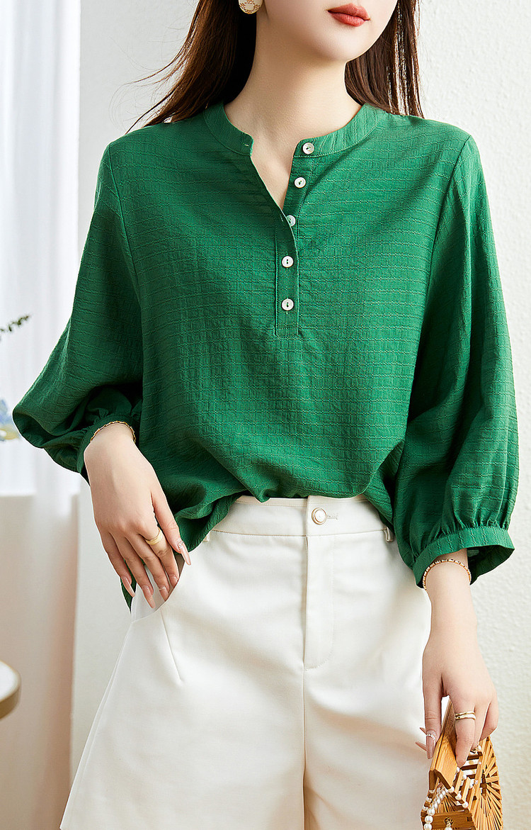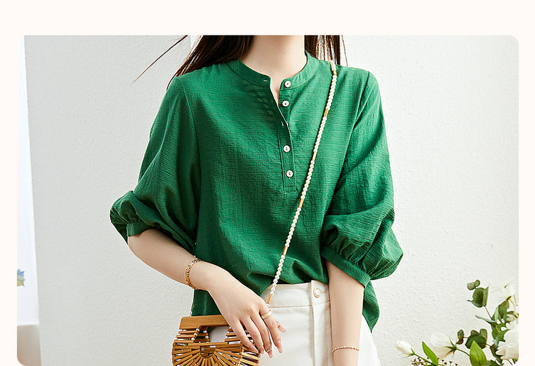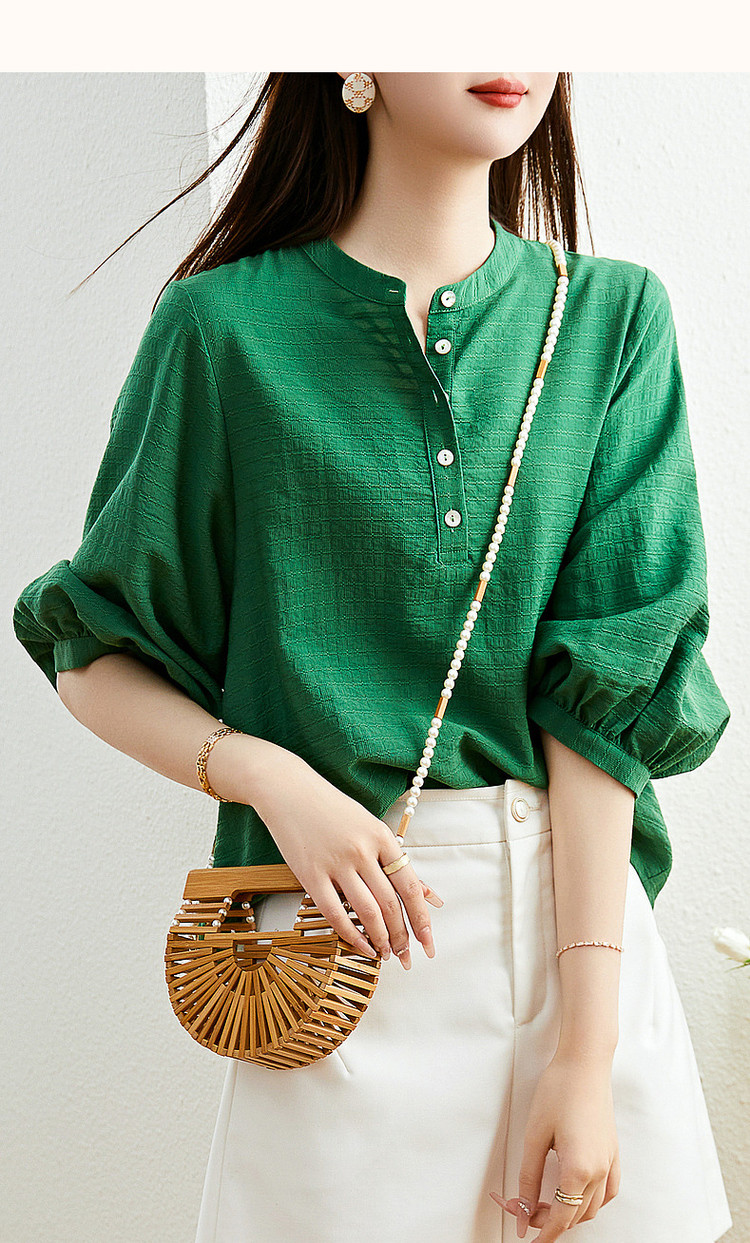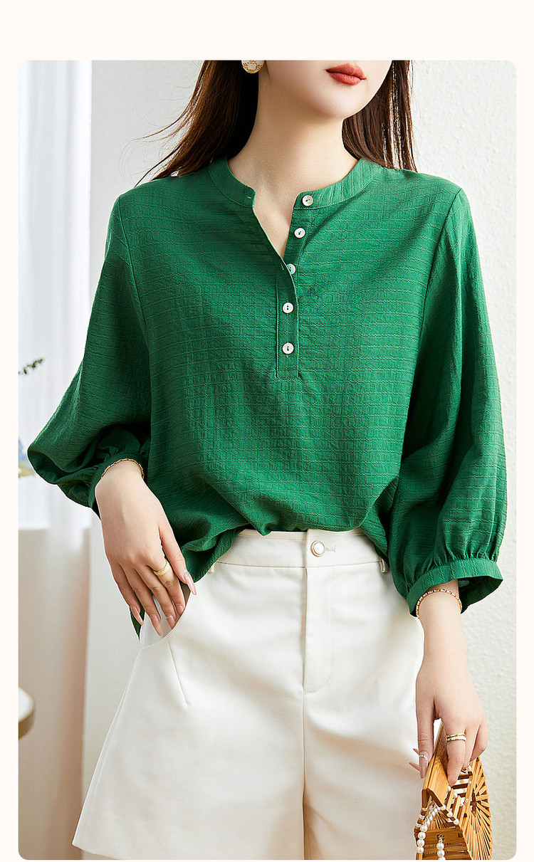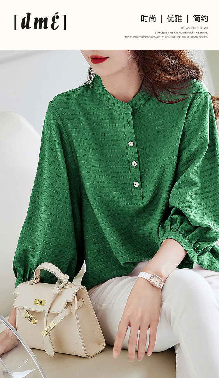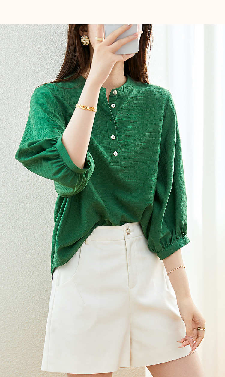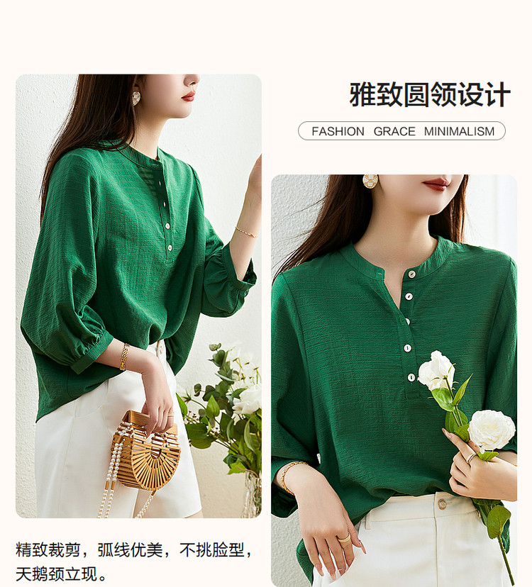 商品名称:【慵懒精致感】春秋通勤圆领印花肌理感衬衫七分袖衬衫女装上衣 468033