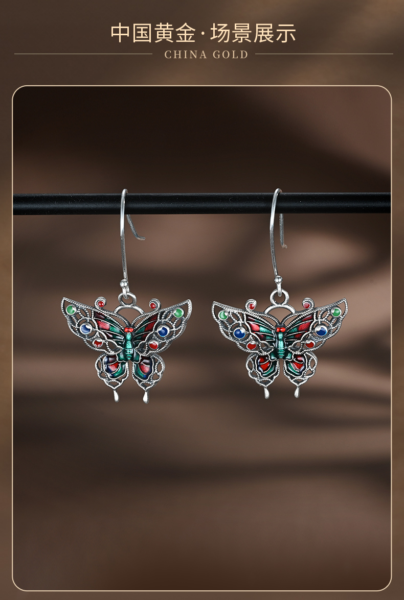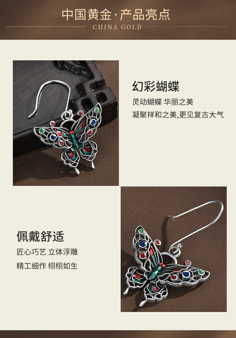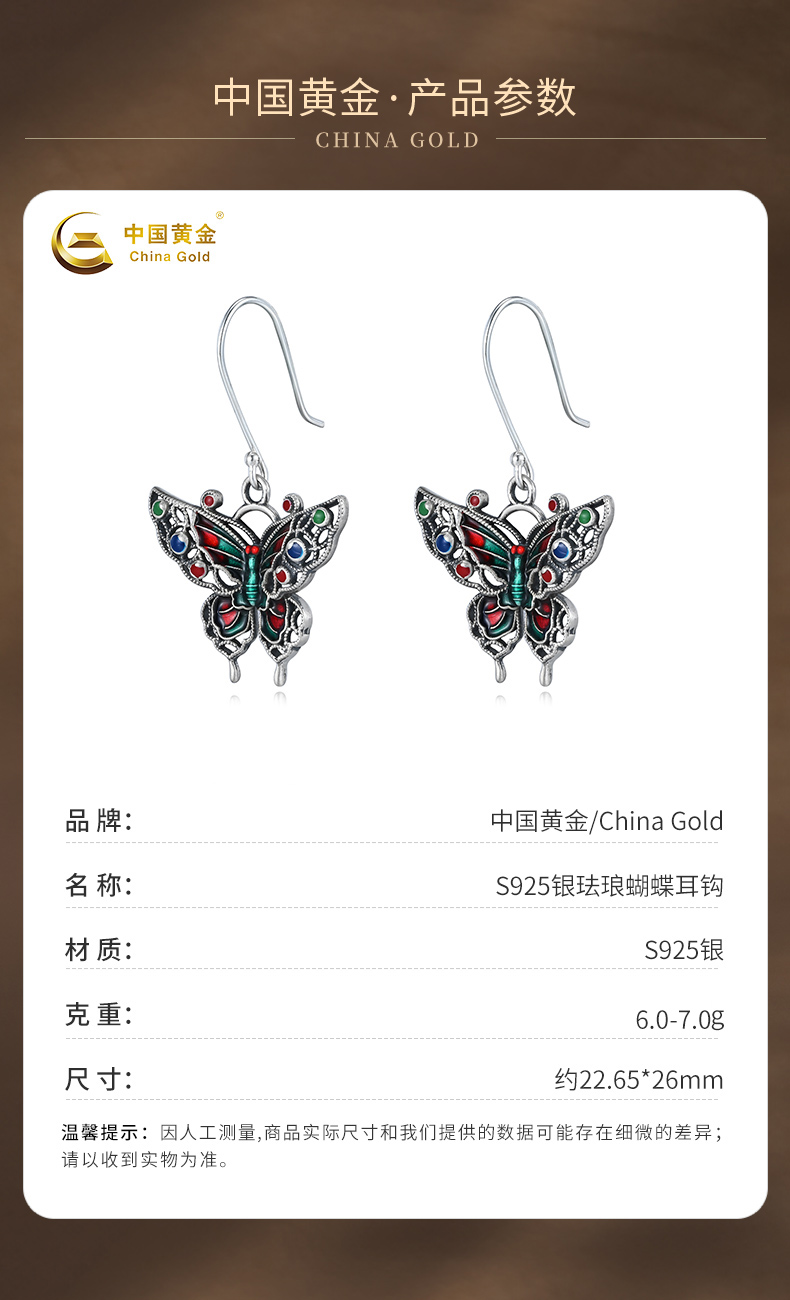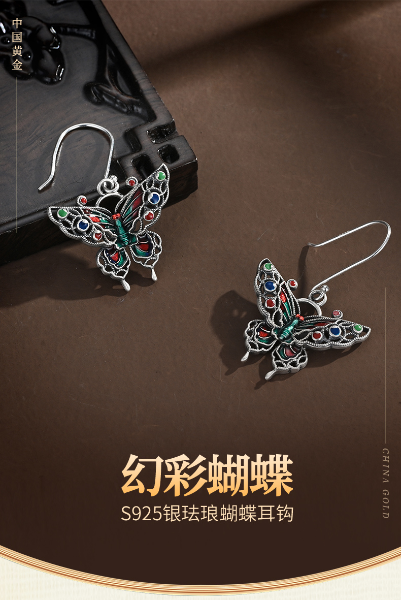 商品名称:China Gold/中国黄金S925银珐琅蝴蝶耳钩ZGHJ231847